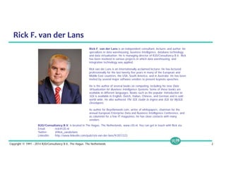 The document discusses the selection of SQL-on-Hadoop solutions, emphasizing the advantages of Apache Drill for self-service data exploration and the significance of high data storage and processing scalability. It outlines the features and capabilities of multiple data technologies, covering aspects like schema flexibility, performance, and integration with various data sources. Additionally, it highlights the importance of SQL in enhancing productivity and maintainability within data projects, while addressing the challenges of managing complex queries and data types.