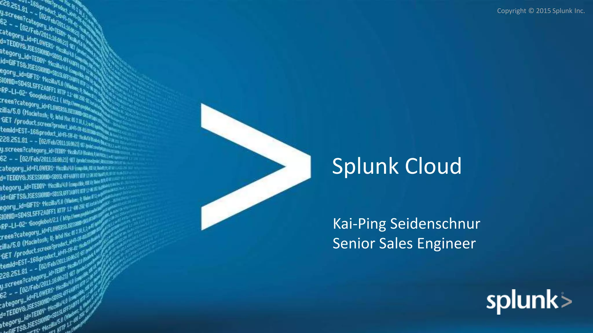 This document discusses Splunk Cloud, a platform for collecting, analyzing, and visualizing machine data from any source. Some key points: