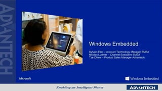 The document provides contact information for local consultants in various European countries including Italy, France, Spain, Portugal, Greece, the UK, and the Nordics. Contact details include names, email addresses, and phone numbers for Chiara Geroli and Simon Purslove. It also includes a link to a website related to Windows POSReady.