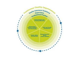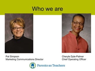 The document outlines Parents as Teachers' strategic plan to emphasize model fidelity and replication in order to ensure sustainability. It discusses the importance of clarifying their audience and role, as well as aligning services with their mission. By 2014, all affiliated programs will need to comply with expectations for consistent implementation of core competencies and evidence-based practices to position themselves for continued funding and branding as a trusted resource.