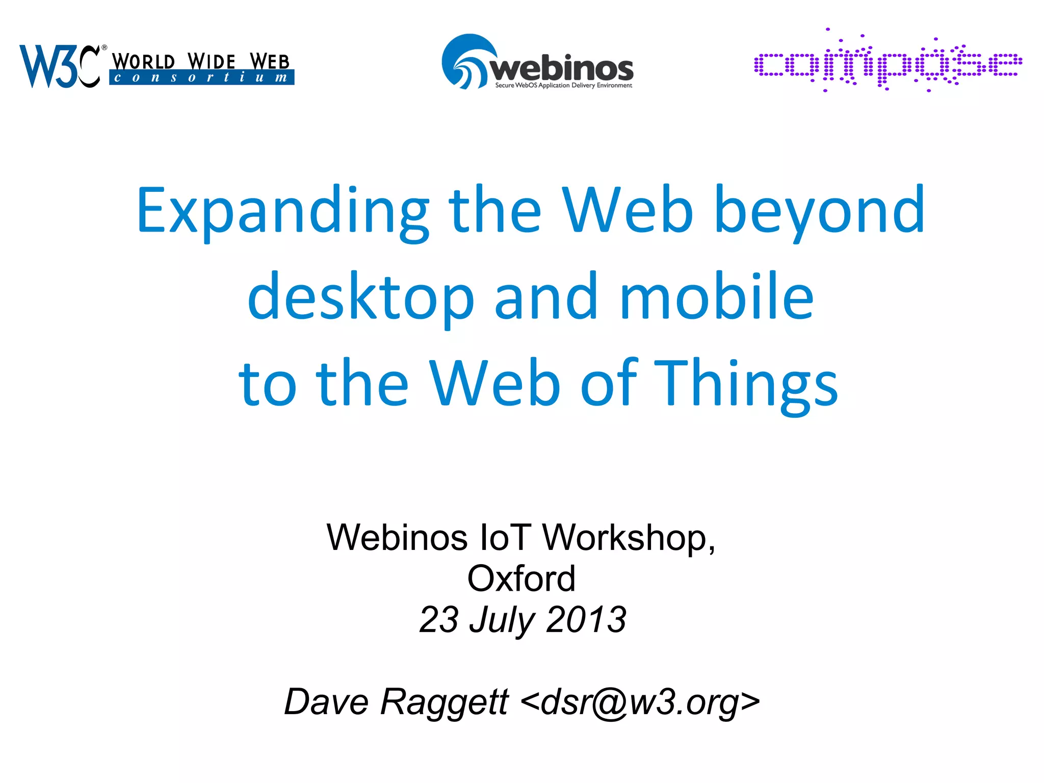 This document provides a history of the development of the World Wide Web and related technologies. It discusses pioneers like Vannevar Bush, Douglas Engelbart, and Ted Nelson who conceived of early hypertext systems. It outlines the creation of the first web browser and server by Tim Berners-Lee at CERN in the 1980s and 1990s. It also summarizes the role of the W3C in establishing open web standards and enabling the internet of things through applications of web technologies.