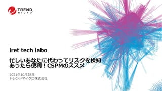 iret tech labo 忙しいあなたに代わってリスクを検知 あったら便利!CSPMのススメ 2021年10月28日 トレンドマイクロ株式会社