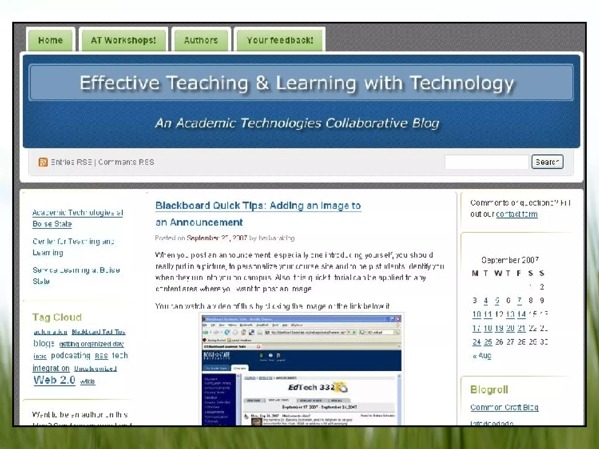 Blogs are websites with linear content like posts and comments that function like online journals. They are simple to author with customizable templates. Wikis are websites for dynamic, collaborative content creation where any user can edit pages. Wikis allow for group thinking and input while maintaining version history. Resources are provided for learning more about blogging, wikis, and comparing different wiki platforms.