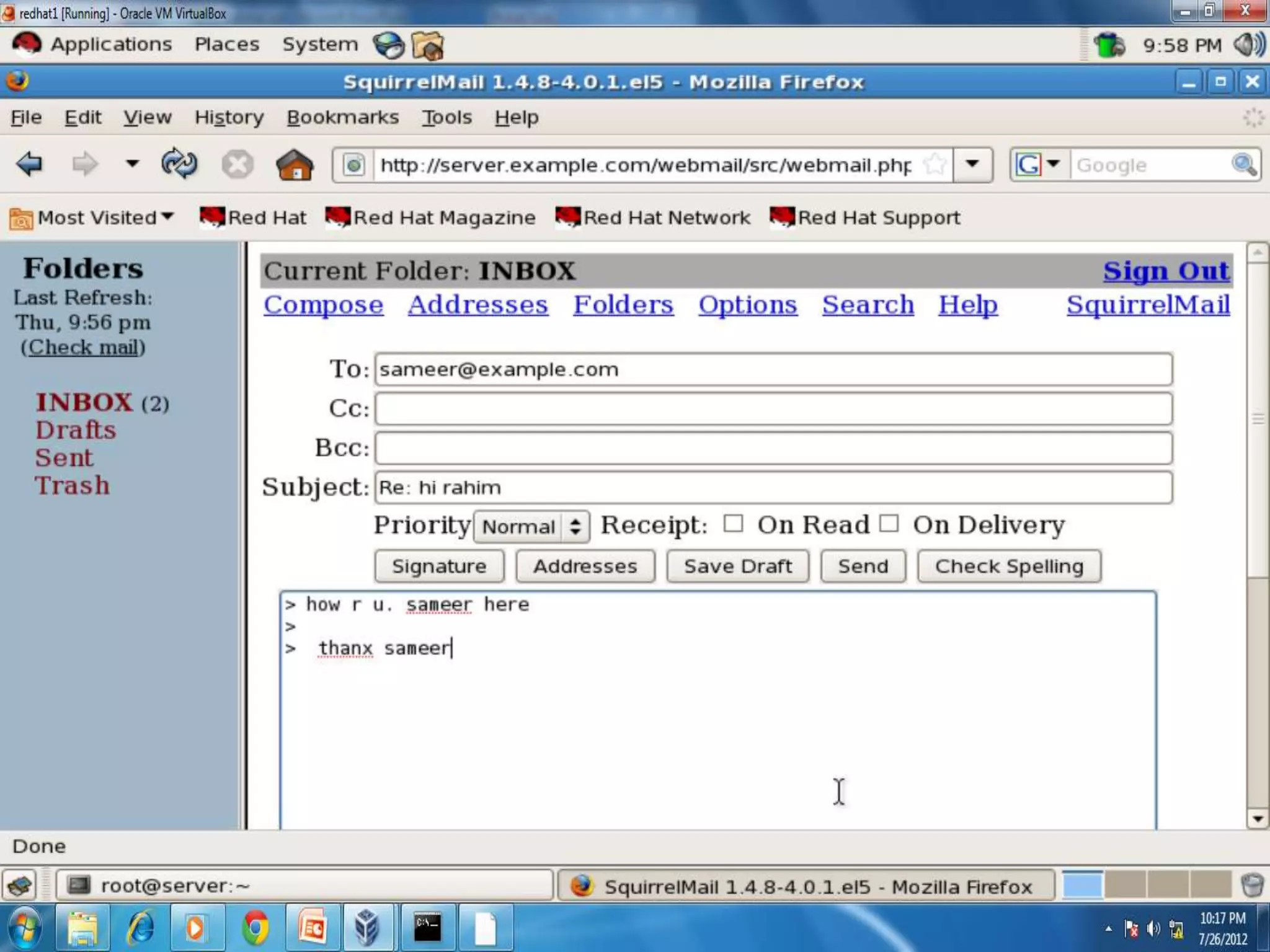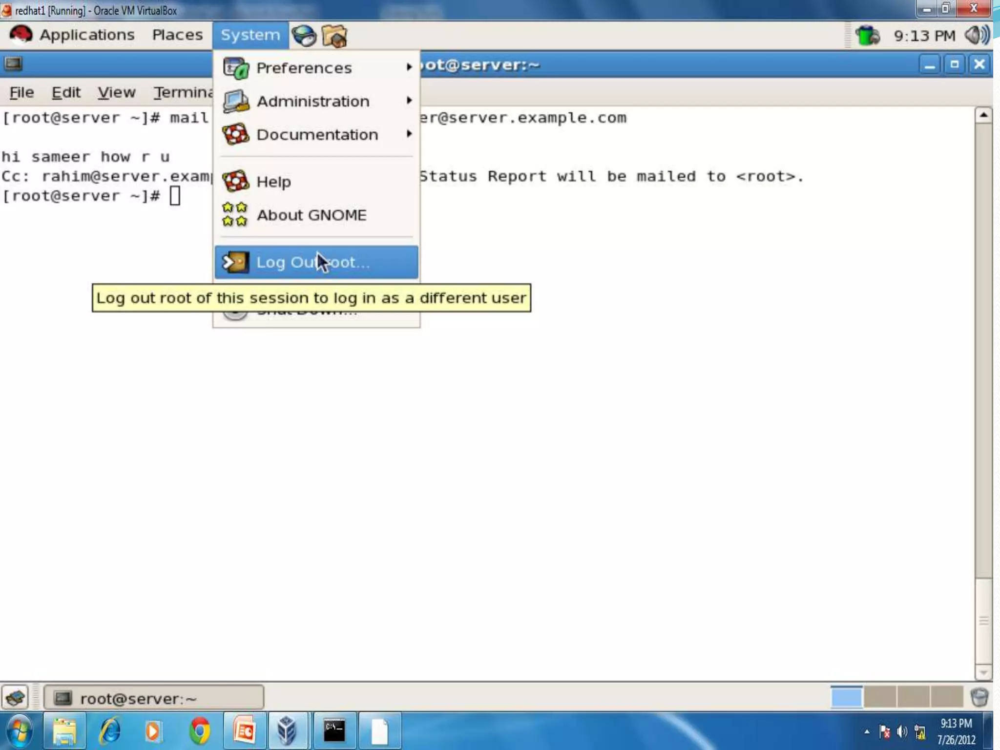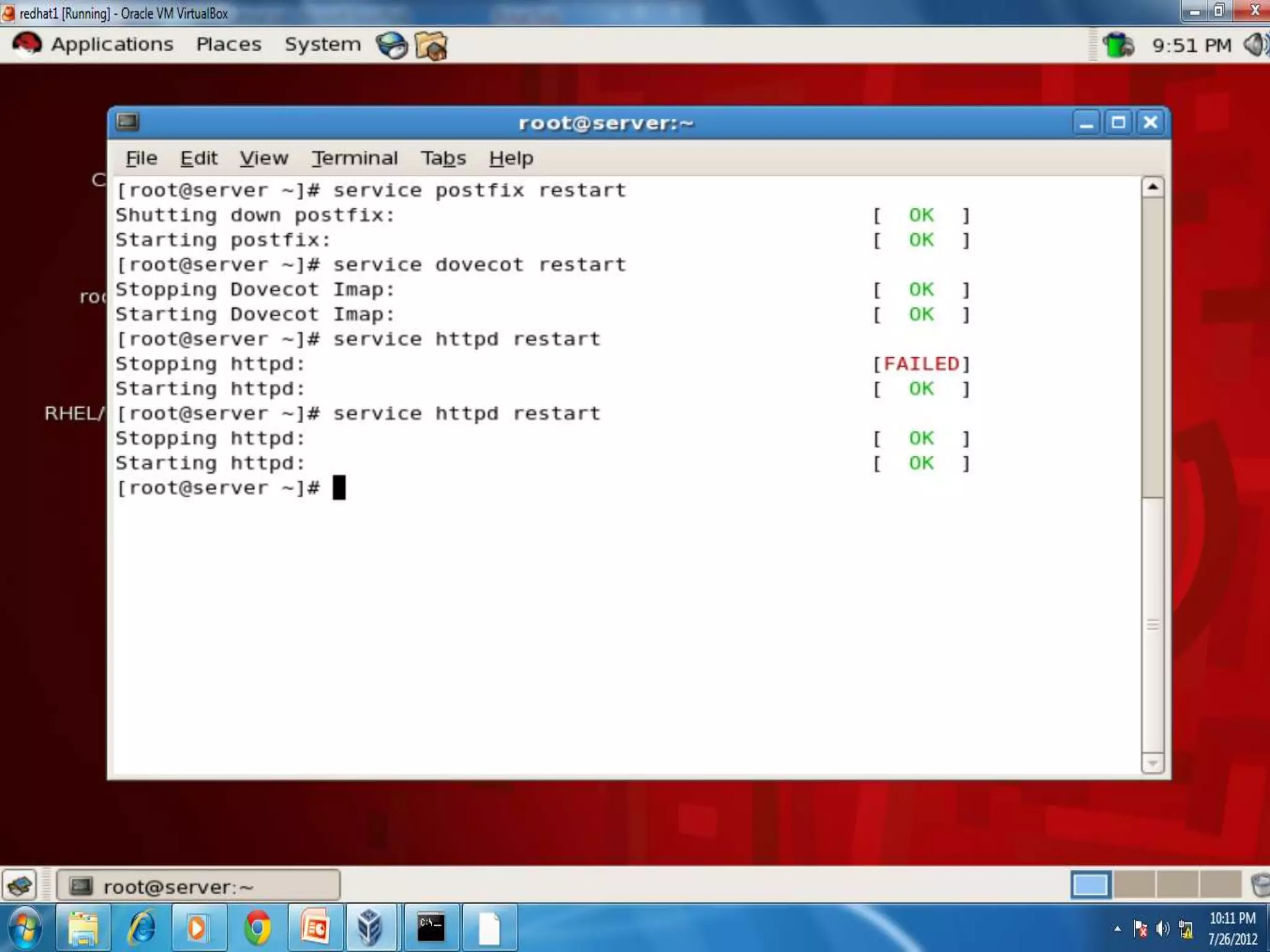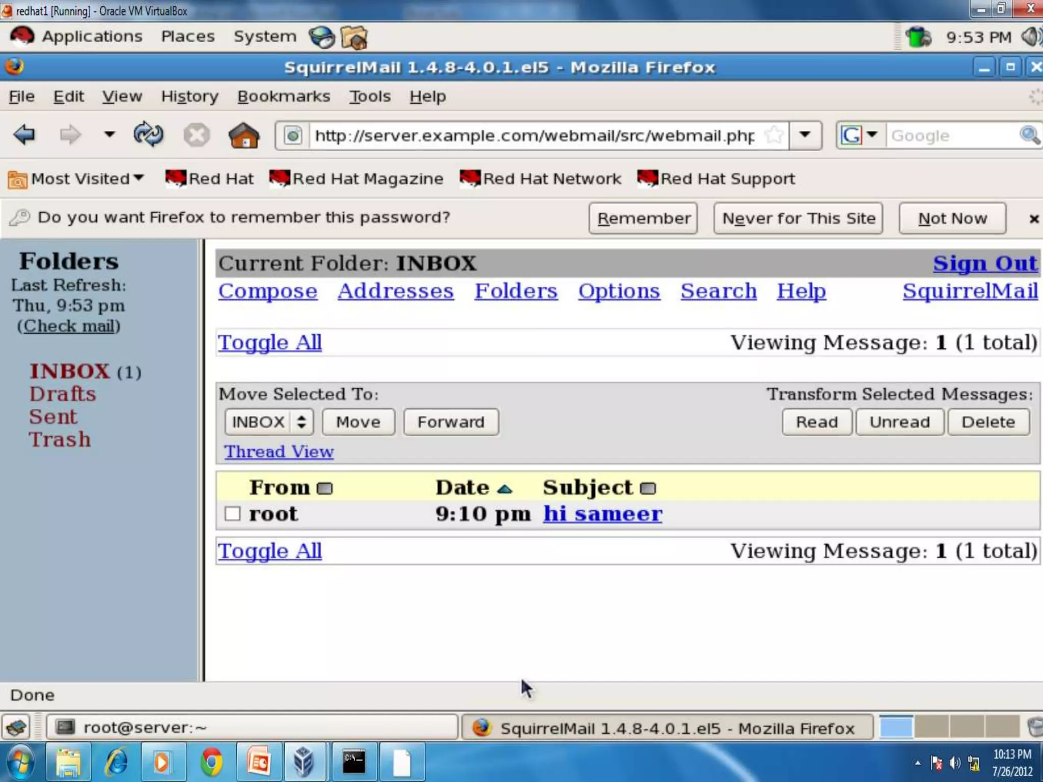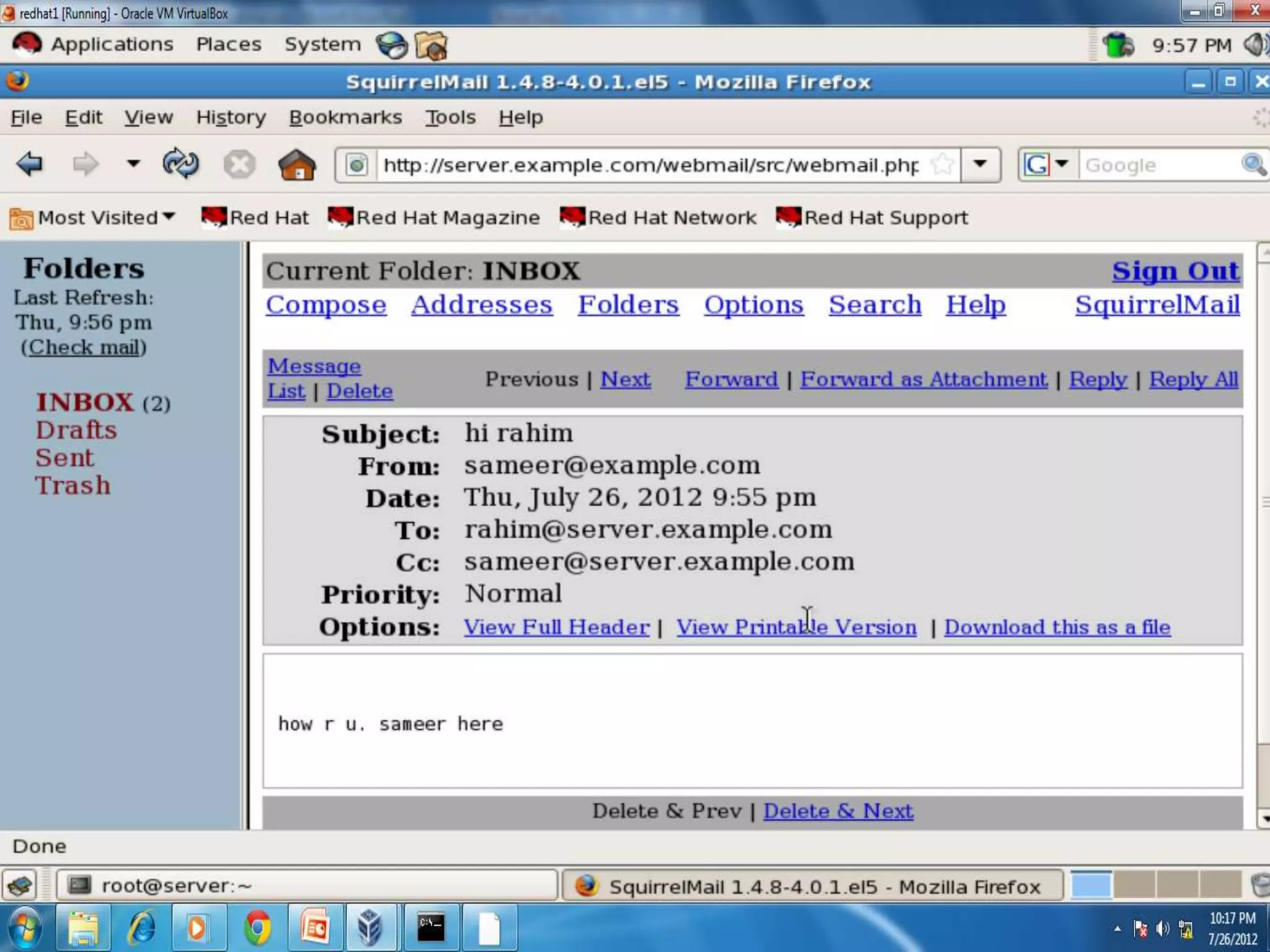This document provides instructions for configuring a mail server on Red Hat Linux. It describes installing Postfix as the mail transfer agent (MTA), configuring Dovecot for POP3 and IMAP access, creating user accounts, sending a test email between users, and configuring the SquirrelMail webmail interface. Key steps include installing system-switch-mail-gnome, restarting Postfix and setting it to start on boot, configuring Dovecot, adding users, sending an email from the root user to a new user, and configuring SquirrelMail's SMTP and server settings.