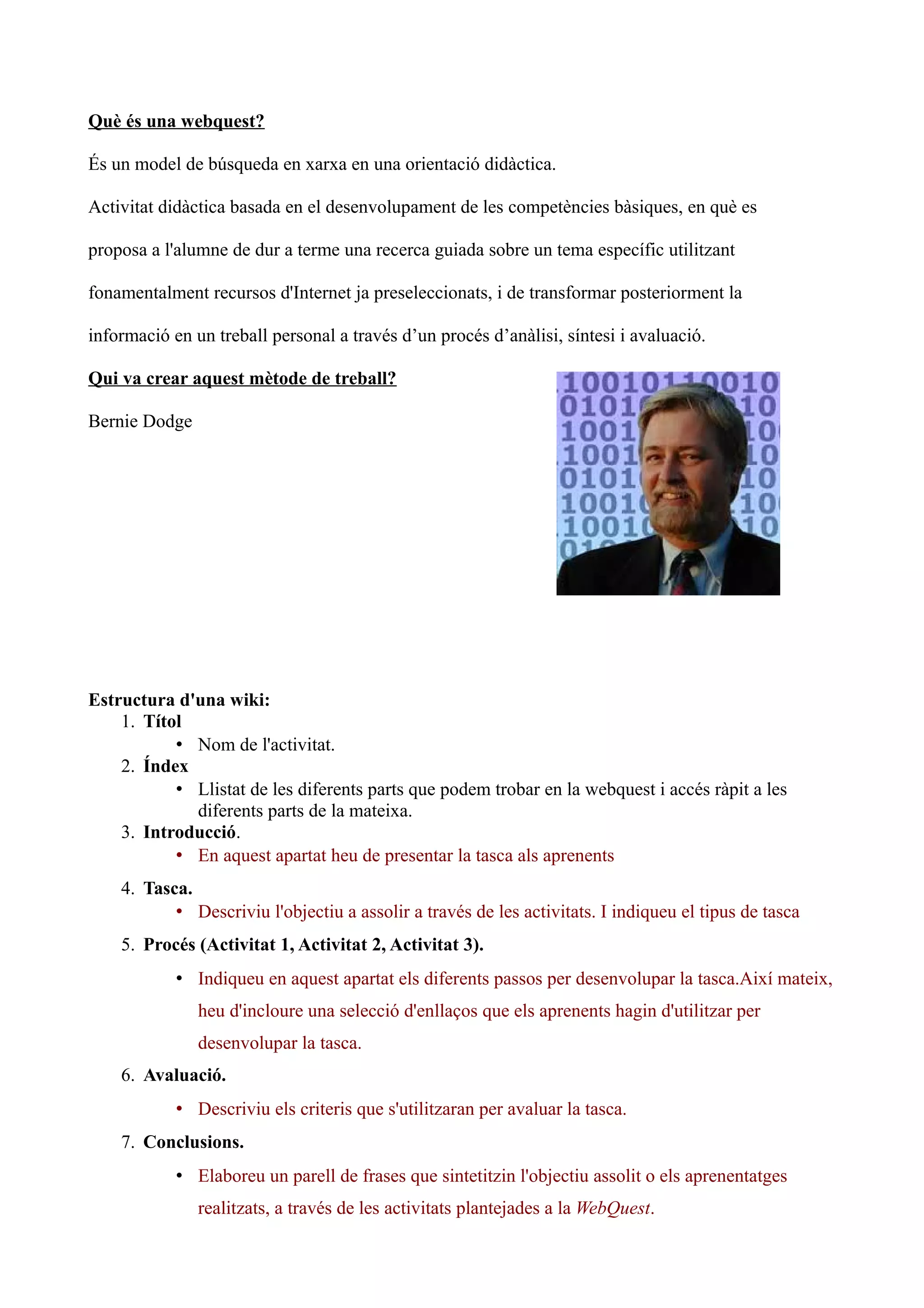 • Llistat de les diferents parts que podem trobar en la webquest i accés ràpit a les