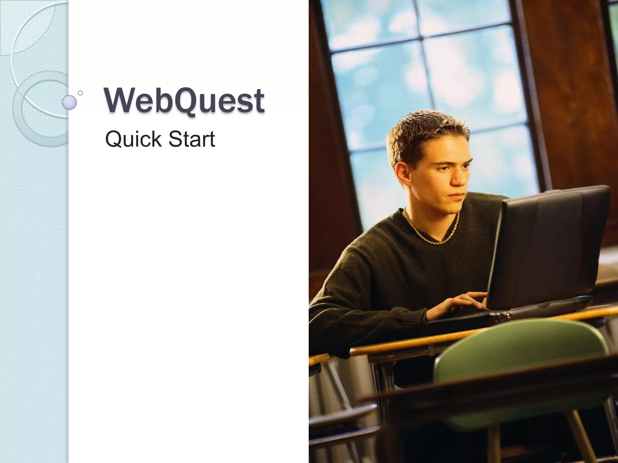 A WebQuest is an activity or lesson created using a specific format that guides students to use online resources to solve real-life problems or create real products. The format includes sections for a title, introduction, task, process, evaluation, and conclusion. It allows students to work together and role play while learning. The process section outlines clear steps for students to follow using online resources and equipment. The evaluation section provides guidelines for what is expected from students and groups. The conclusion wraps up the activity and has students discuss what they learned. The teacher page provides information for adapting or improving the WebQuest.