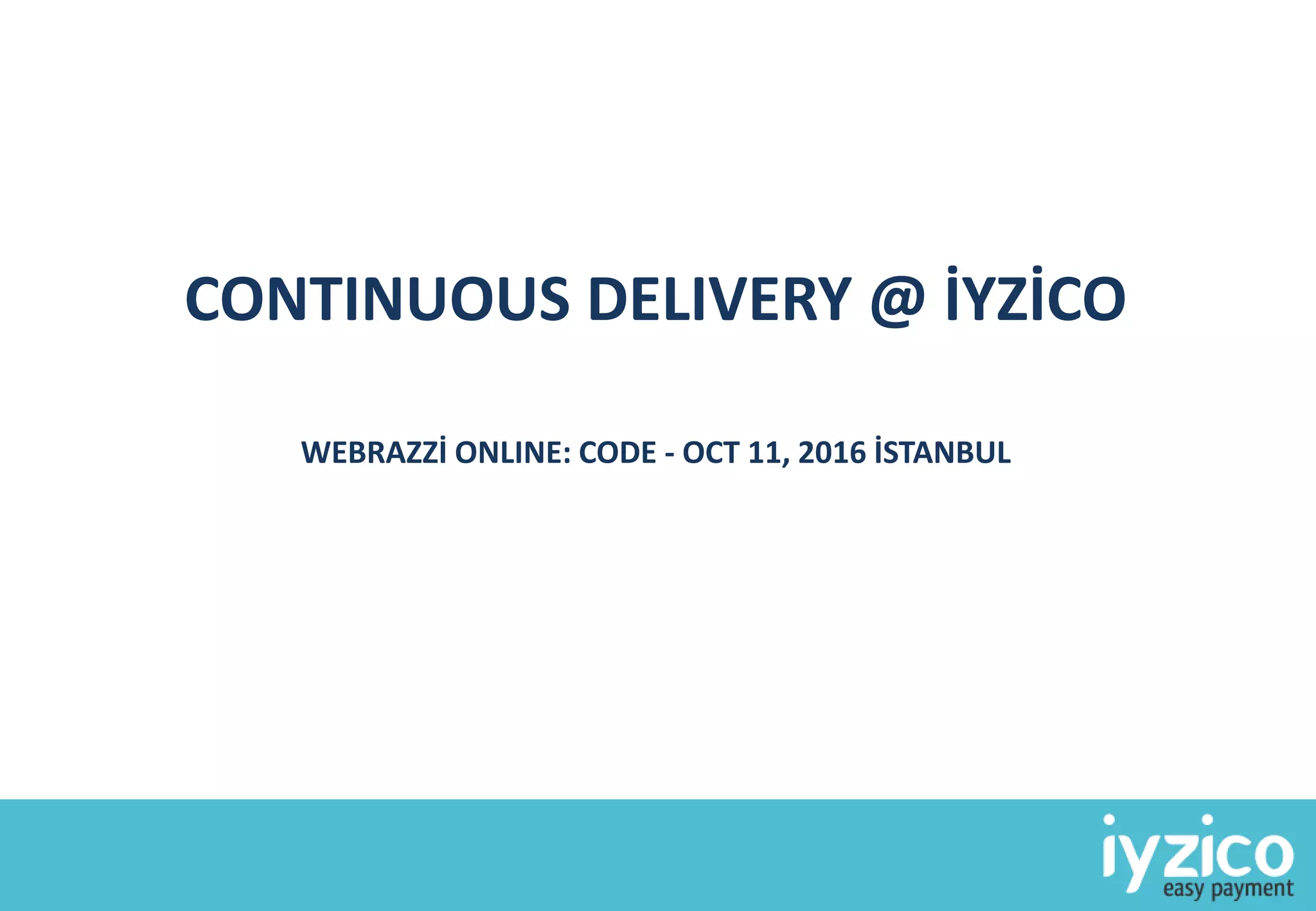 The document outlines the continuous delivery practices at iyzico, detailing their tech stack and engineering methodologies. Key milestones include payment product launches, acquisitions, and certifications since its founding in 2013, along with a focus on efficient development through principles like test automation and pair programming. It also mentions tools for production monitoring and community resources for developers.