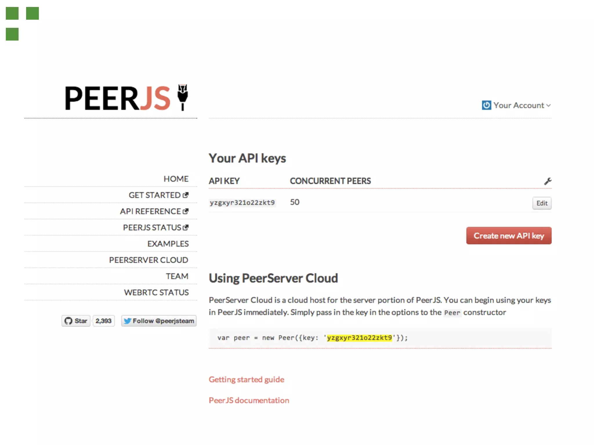= new Peer({ key: 'xxxxxxxxxx', config: { 'iceServers': [ { url: ‘stun:stun.l.google.com:19302'} ] } });