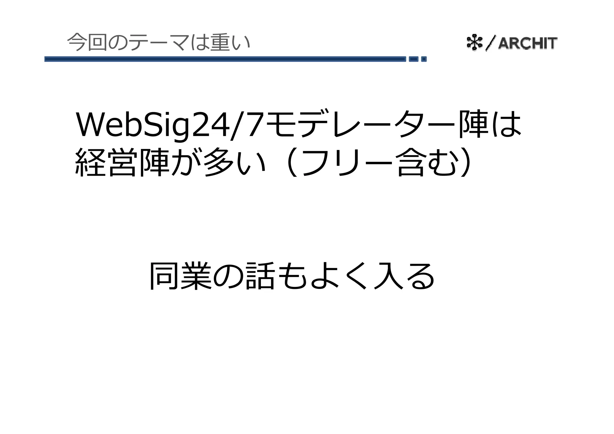 2009年3月21日 WebSig24/7主催 「Survive! 不況に流されないWeb屋の生き残 り方~真似できない個性と付加価値を作り出す」 において、Web業界での生き残り方を俯瞰してまとめた資料