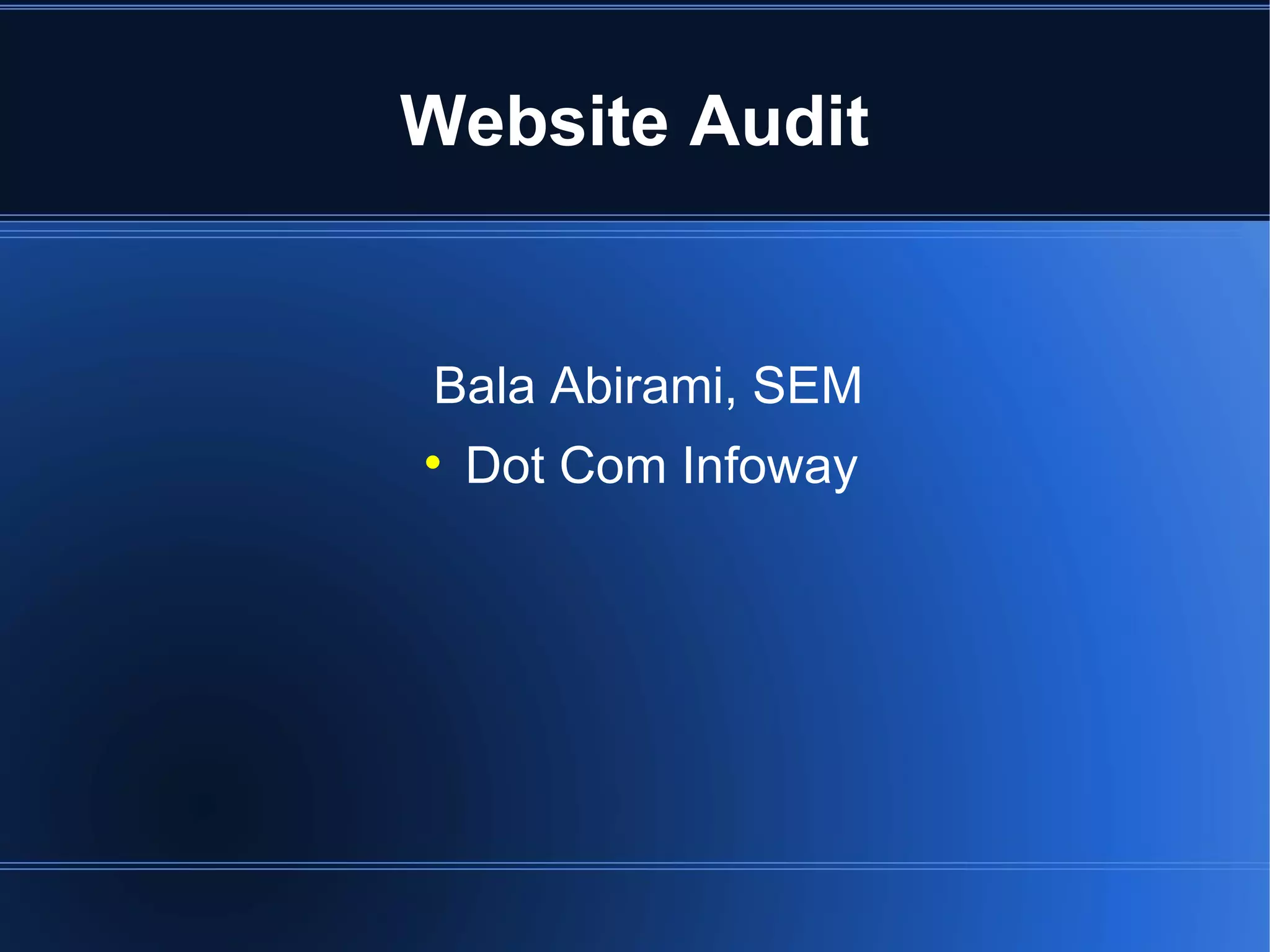The document discusses various aspects of website auditing including SEO auditing, content optimization, internal linking, URL structure, use of robots.txt and sitemaps, source code optimization, design and usability, and navigation. It provides tips on making a website more search engine friendly and improving its online presence through conversion rate optimization.
