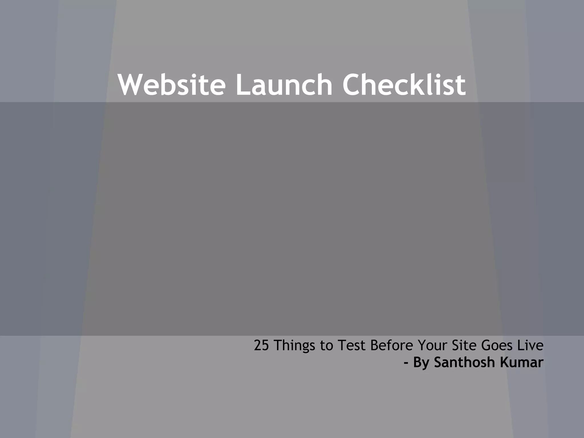 This document provides a 25-point checklist of things to test before launching a new website, including: