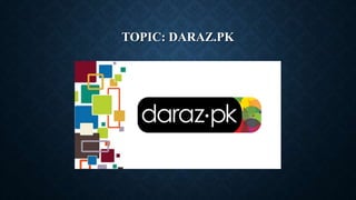 Daraz is an e-commerce company that operates marketplaces and logistics services in South Asia. It was founded in 2012 and acquired by Alibaba in 2018. Daraz uses several programming languages and software in its operations, including HTML, CSS, JavaScript for website development, ASP.NET, SQL for database management, and OBS software for order processing. The company sells a wide range of products and manages operations across multiple countries in South Asia.