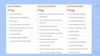 This document provides pricing information for website design and development services from Pmsl Technology. Pmsl Technology transforms client ideas into intuitive website designs and applications without exceeding budgets. They offer outstanding support like remote developer access and 24/7 support and maintenance to help clients focus on their core business while Pmsl Technology takes care of customer engagement goals.