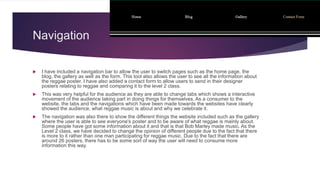 This document summarizes the key features of a website created about reggae music. The website includes: