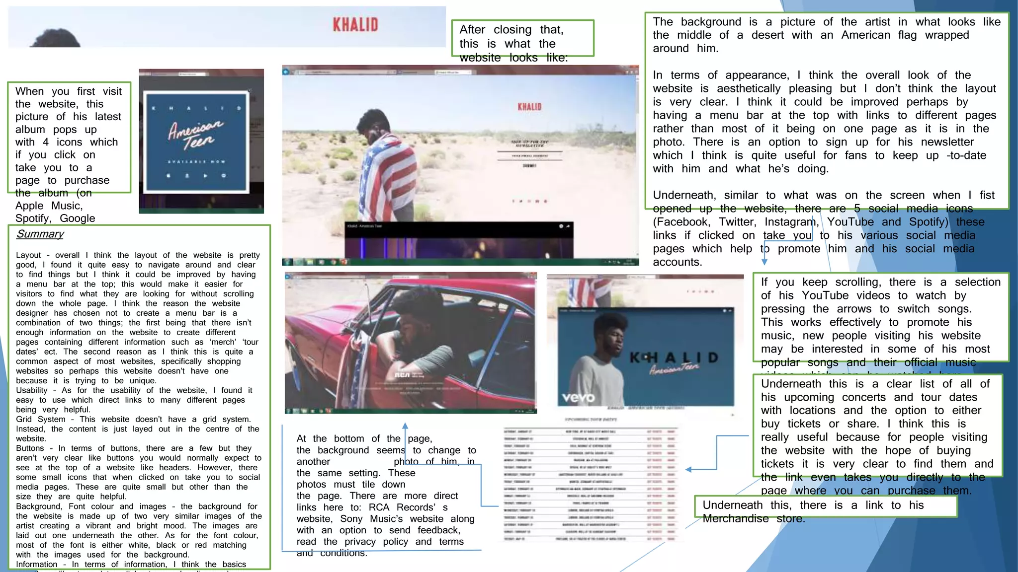 The website features a clean layout with a menu bar down the left side. The main page displays a collection of black and white images related to Rihanna's various projects. When hovered over, the images display text with story details and click through to dedicated pages. The menu bar links to pages for news, videos, photos, music albums, her makeup line, fashion line and a charity. These pages have a similar layout of images that link out to more in-depth information or external websites. The website effectively promotes Rihanna's various business ventures in music, beauty, fashion and charity.
