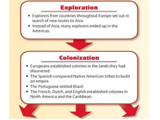 The passage describes the triangular slave trade between Europe, Africa, and the Americas. It began as Europeans established colonies in the Americas but lacked a sufficient workforce. Africans were enslaved and transported to the Americas to work on plantations and mines, as they were better suited to the tropical climate and resistant to European diseases. The triangular trade route involved ships transporting supplies from Europe to Africa, slaves from Africa to the Americas, and goods from the Americas back to Europe, providing profits for European merchants but great suffering for enslaved Africans through the Middle Passage.