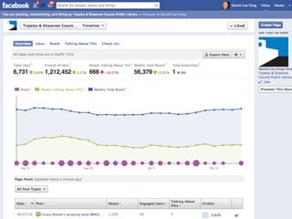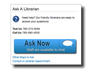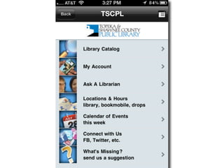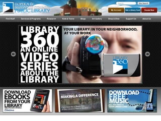 This document provides 7 goals and 6 tips for taking a library website to the next level. The goals are to 1) create engaging content for visitors, 2) answer customer questions, 3) provide basic information, 4) staff the website with real library employees, 5) create and meet measurable goals, 6) engage with customers in places they gather online, and 7) design the website to be mobile friendly. The 6 tips are to connect with relevant content, analyze and improve the website, talk to customers, recognize that every organization is now a media company, and thank visitors.