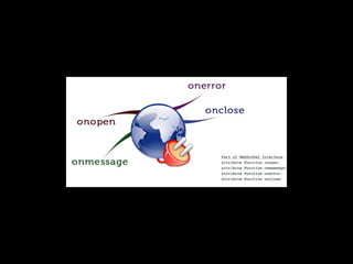 This document discusses using WebSockets and EventMachine to build a real-time Twitter stream application. It introduces key concepts like HTML5 WebSockets, EventMachine, and the Twitter Streaming API. It provides code examples for creating a WebSocket connection in the browser, and using EventMachine to build a WebSocket server that subscribes to the Twitter stream and publishes tweets to connected clients over WebSockets.