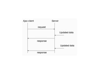 WebSockets allow for bidirectional communication between a client and server over a single TCP connection. They improve on older "Comet" techniques which used polling and long-polling to simulate real-time updates. With WebSockets, the client can open a WebSocket connection to the server which sends messages at any time without needing an explicit request. This enables real-time applications with constantly updating information. The document outlines the WebSocket protocol, provides examples of the API in browsers, and discusses frameworks for building WebSocket applications.