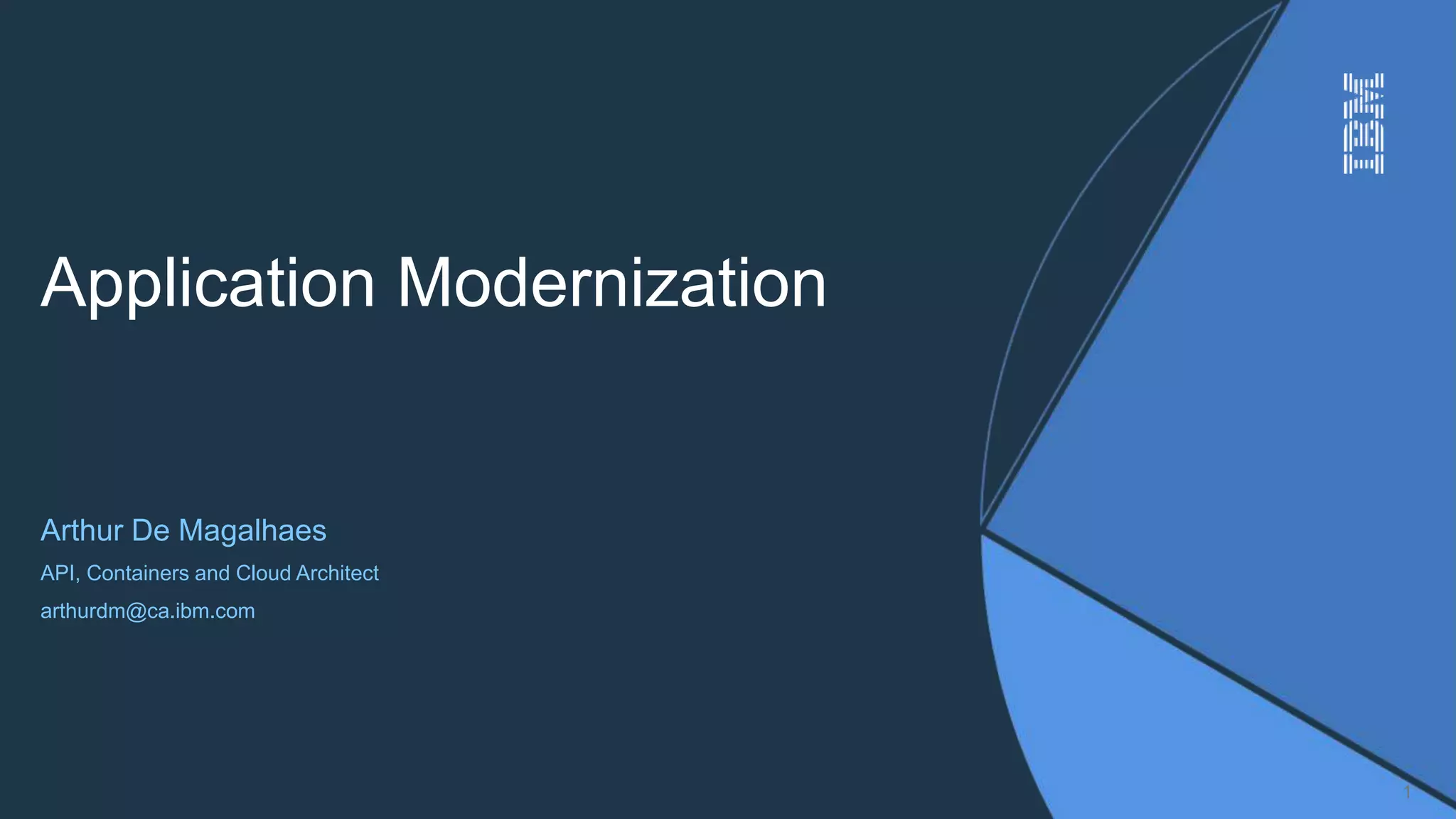This document discusses application modernization and provides an overview of Docker containers, WebSphere Application Server (WAS) lift-and-shift, and next steps. It introduces modernization stages like lift-and-shift, refactor, and rebuild. It then covers Docker containers for WAS Liberty and traditional WAS. IBM Cloud Private (ICP) and Helm charts for automating deployments on Kubernetes are also discussed. The document concludes with a brief discussion of WAS lift-and-shift to IBM Cloud and potential next steps involving OpenShift and ICP.