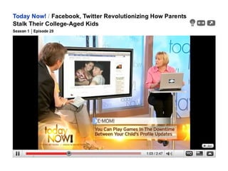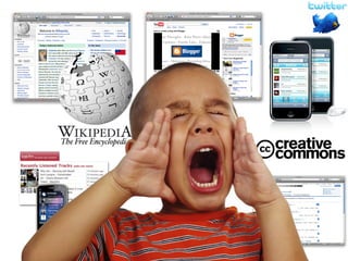 The document discusses the shift from one-to-many mass media communications to many-to-many social media interactions. It notes that as the number of media channels increased in the 2000s, mass media became less effective at reaching consumers. Social media supports sharing information through social interactions online and allows people to become content producers rather than just consumers. However, social media also brings challenges around how power and responsibility are managed in online communities.