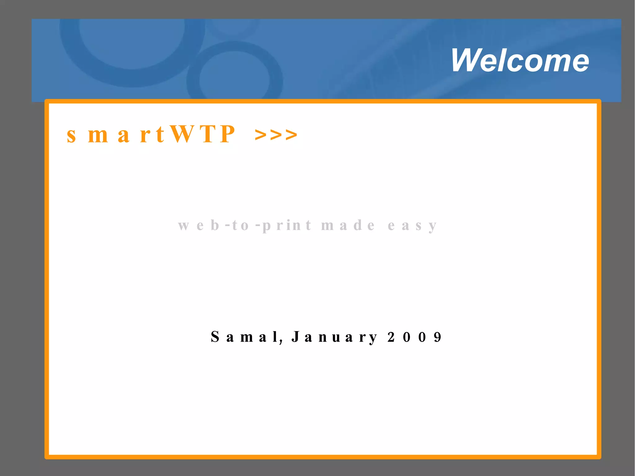 This document introduces smartWTP, a web-to-print solution that offers several benefits to customers. SmartWTP is a scalable, customizable, and interoperable SaaS solution that eliminates high upfront license fees and the need for specialized IT staff. It allows customers to easily change their business over time. The document describes the storefront module, which offers a customizable design, quick pricing, and easy ordering and job management for both print buyers and providers. Additional modules can be added for collaborative tools, online job creation and editing, automated prepress workflows, and integrating with other systems.