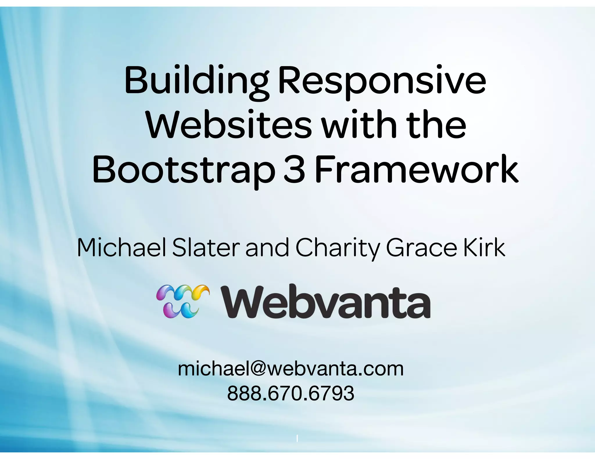 The document is a presentation on building responsive websites using the Bootstrap 3 framework, highlighting the importance of mobile-friendly design and the increasing web traffic from mobile devices. It covers responsive design principles, Bootstrap features, and provides an overview of its grid system, media queries, and customization options. Additionally, the presenters offer insights on mobile-first strategies and invite attendees to ask questions and seek further assistance from Webvanta.
