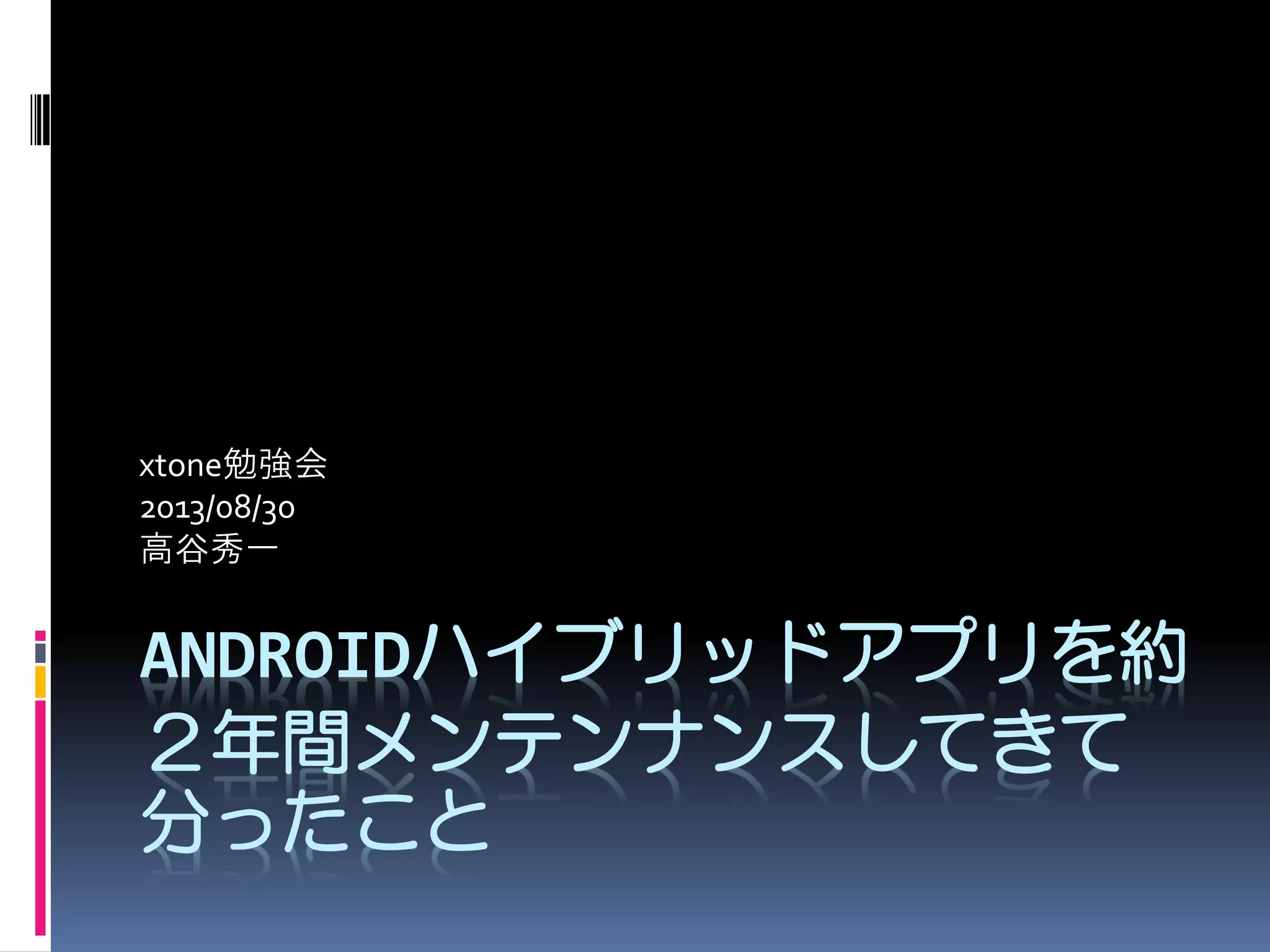 ANDROIDハイブリッドアプリを約 2年間メンテンナンスしてきて 分ったこと xtone勉強会 2013/08/30 高谷秀一