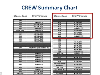 This document discusses reasons why weeding library collections can be difficult and provides tips for overcoming obstacles to weeding. It notes that regular weeding is important for improving library appeal, saving space and staff/patron time, and keeping collections current. Common reasons cited for not weeding include fears of discarding useful materials or upsetting patrons. The document provides guidelines and criteria for systematic weeding from the CREW method. It also offers weeding advice for specific collection areas and tips for getting staff onboard with weeding.