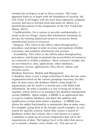 The document discusses the role of databases and security in modern society, highlighting their integration into daily processes such as internet searches and utility management. It emphasizes the importance of database security, pointing out the need for a multilayered approach based on the CIA triad: confidentiality, integrity, and availability. Additionally, it addresses gender disparity in education as a determinant of foreign direct investment (FDI), finding that FDI is discouraged in countries with high gender disparities in education, particularly in middle-income developing nations.