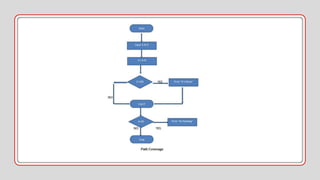 - Common unit testing techniques like statement coverage, branch coverage, and path coverage which aim to test all possible paths through the code.