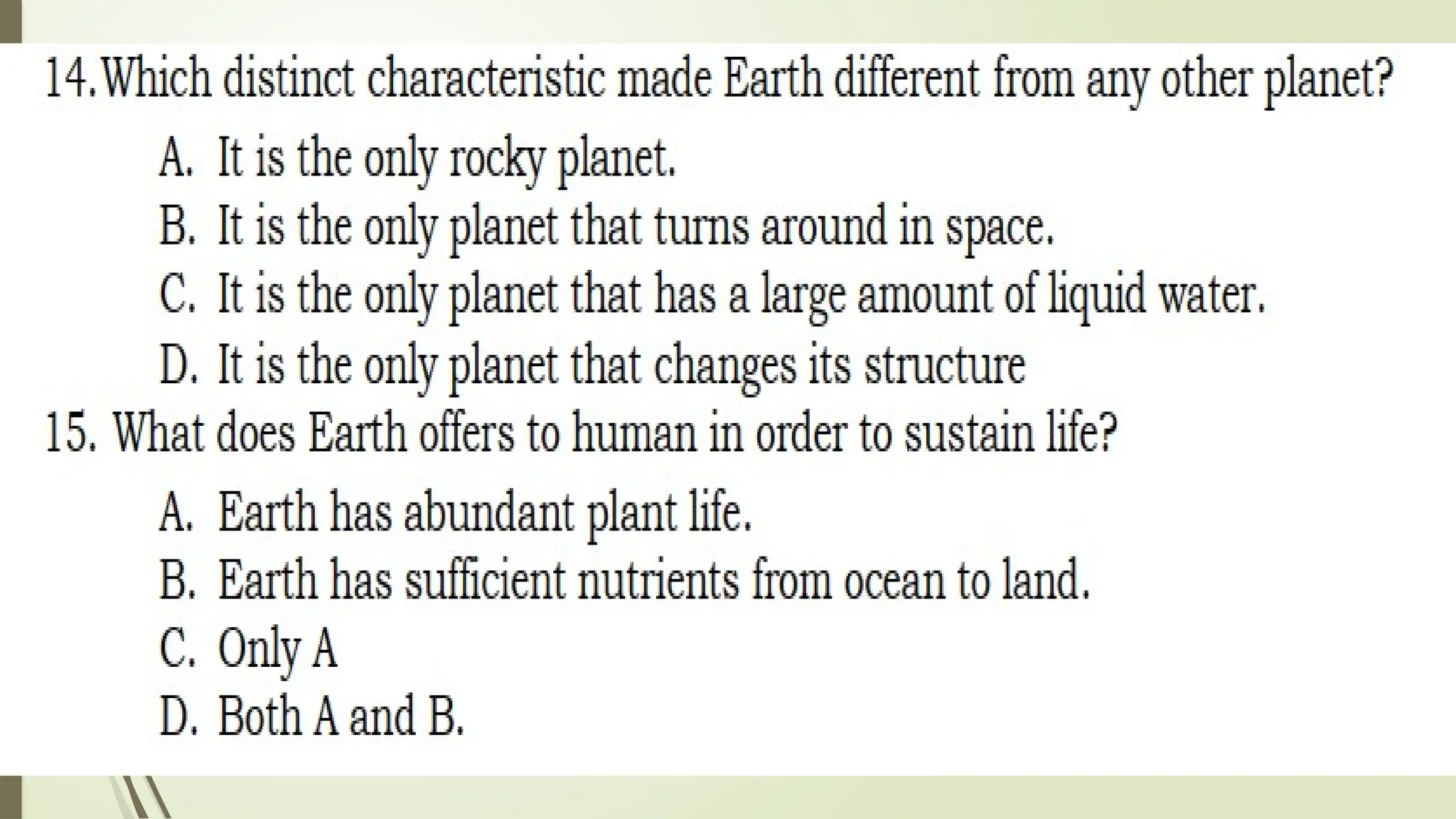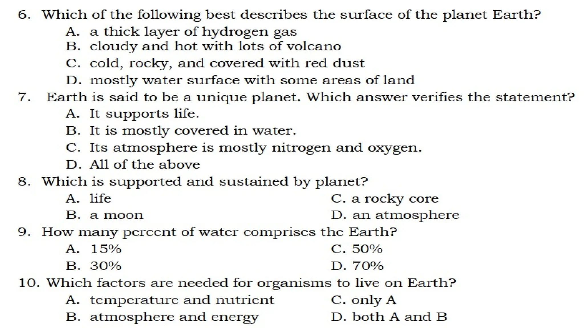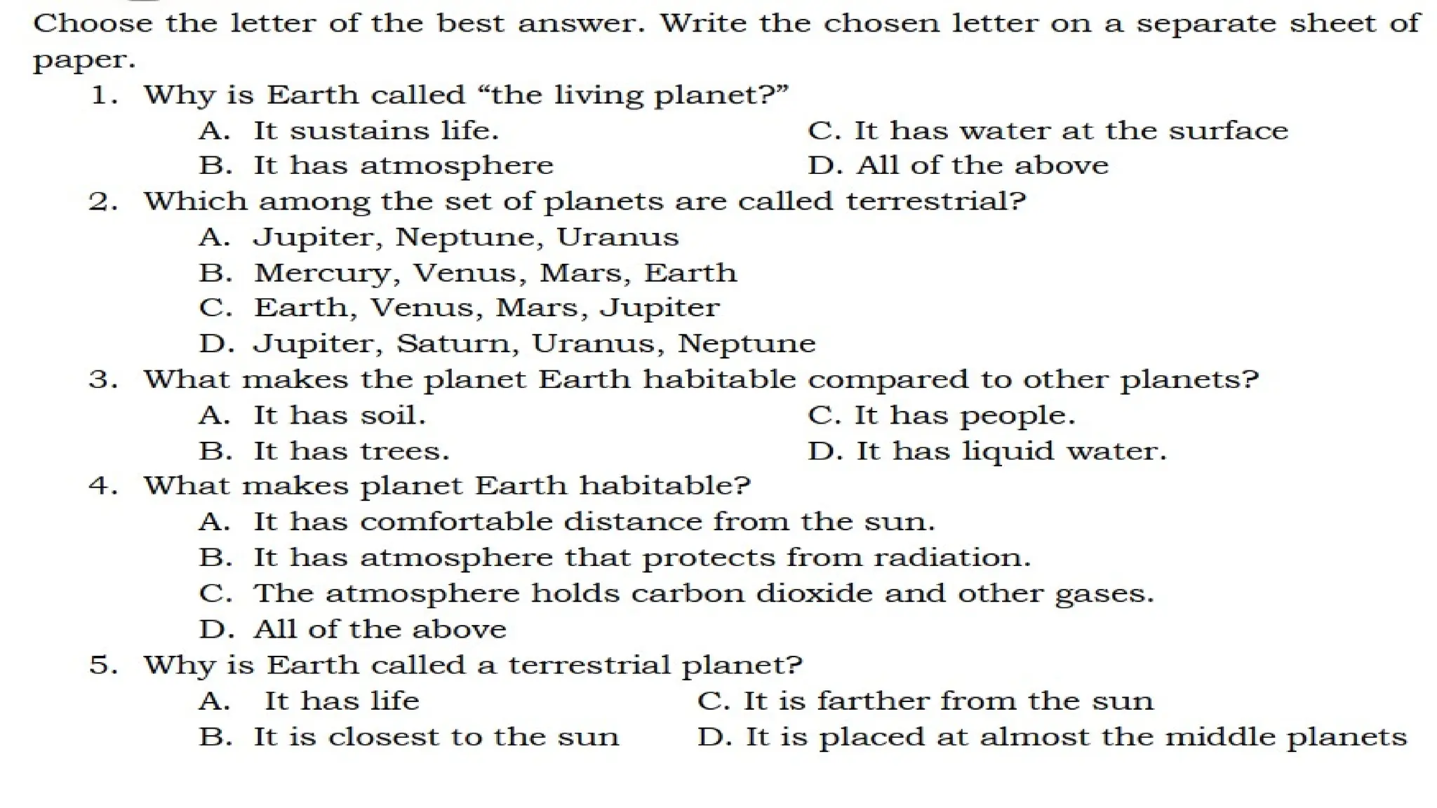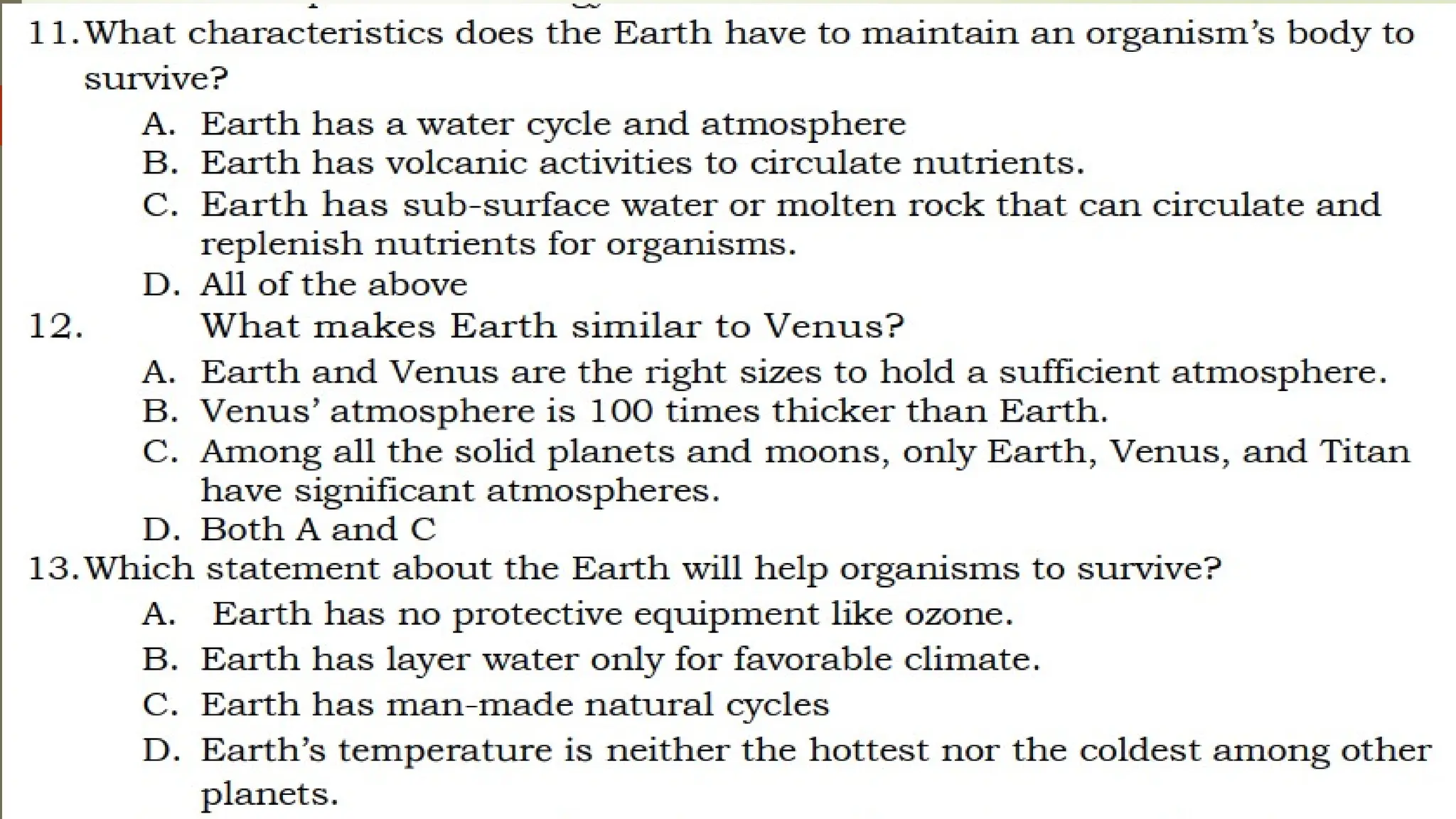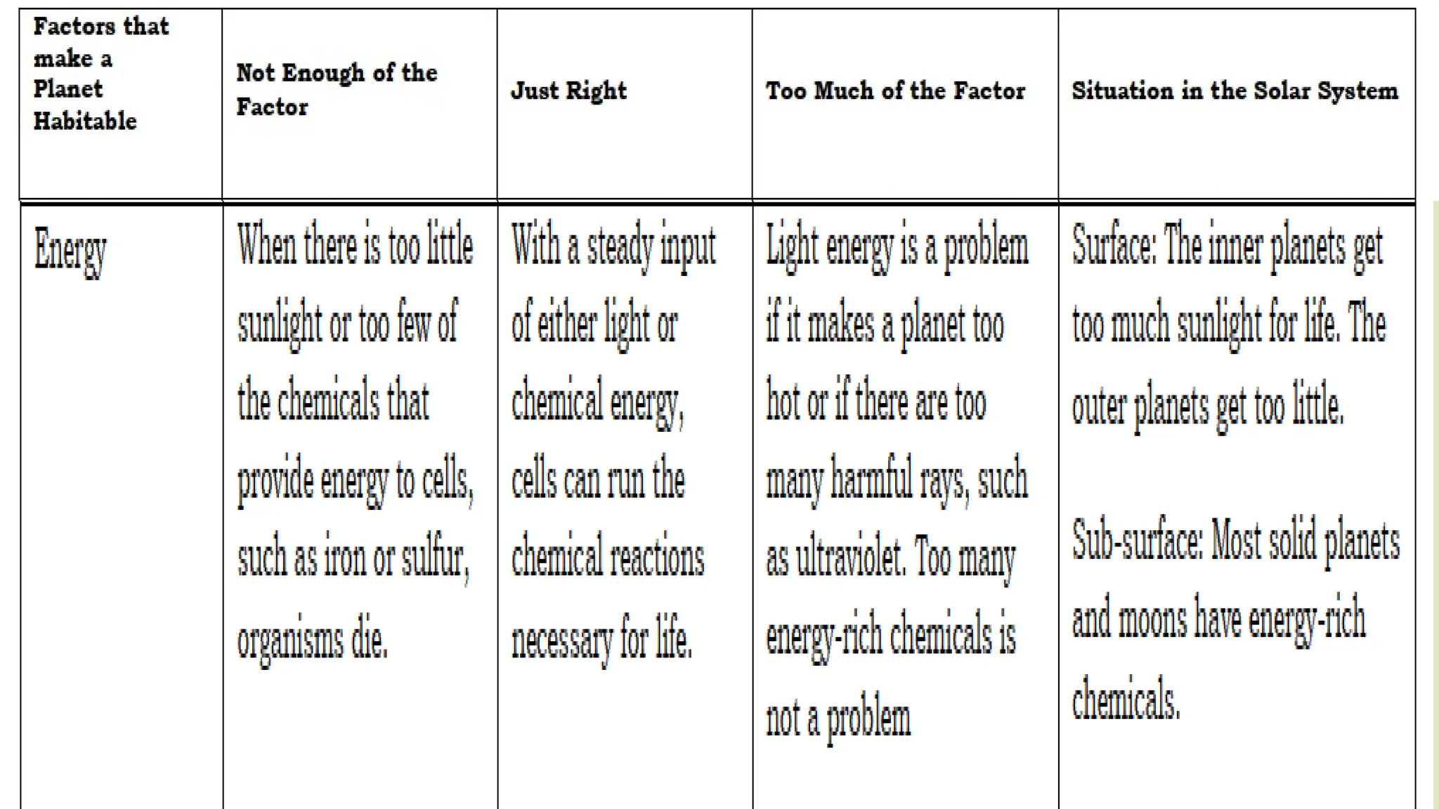 The document outlines the characteristics that make Earth habitable, such as its distance from the sun, magnetic field, atmosphere, and availability of water and carbon. It compares Earth with Venus and Mars, noting similarities like being terrestrial planets and differences such as the presence of liquid water on Earth's surface. Additionally, it highlights that Earth is unique for sustaining life, in contrast to its neighboring planets.