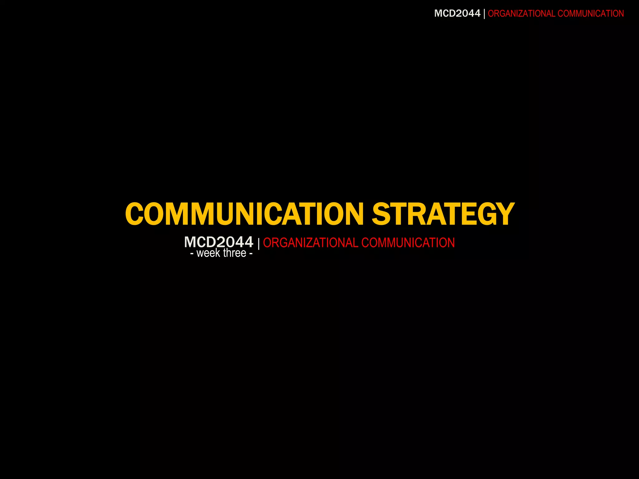 This document discusses communication strategy and provides guidance on developing an effective strategy. It defines communication strategy as plans or methods to facilitate proficient communication. When developing a strategy, one should consider the communication objectives, style, and their credibility with the audience. A good strategy involves choosing the right communicator, understanding the audience, crafting an appropriate message, selecting the best communication channel, and being aware of cultural context. The document outlines factors to consider for each of these elements to help ensure an effective communication strategy.