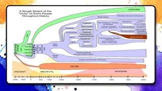 This document summarizes the topics that will be covered in a theology course over six weeks. Week two focuses on how theological knowledge can be obtained. Theology involves both describing God and constructing models to understand divine realities. Theologians build conceptual frameworks to make sense of scripture, tradition, philosophy, science and human experiences of God. The document lists different historical periods to provide context and outlines three common views of how scripture is understood. It emphasizes that the Bible reflects communities seeking to understand God's presence in their lives.