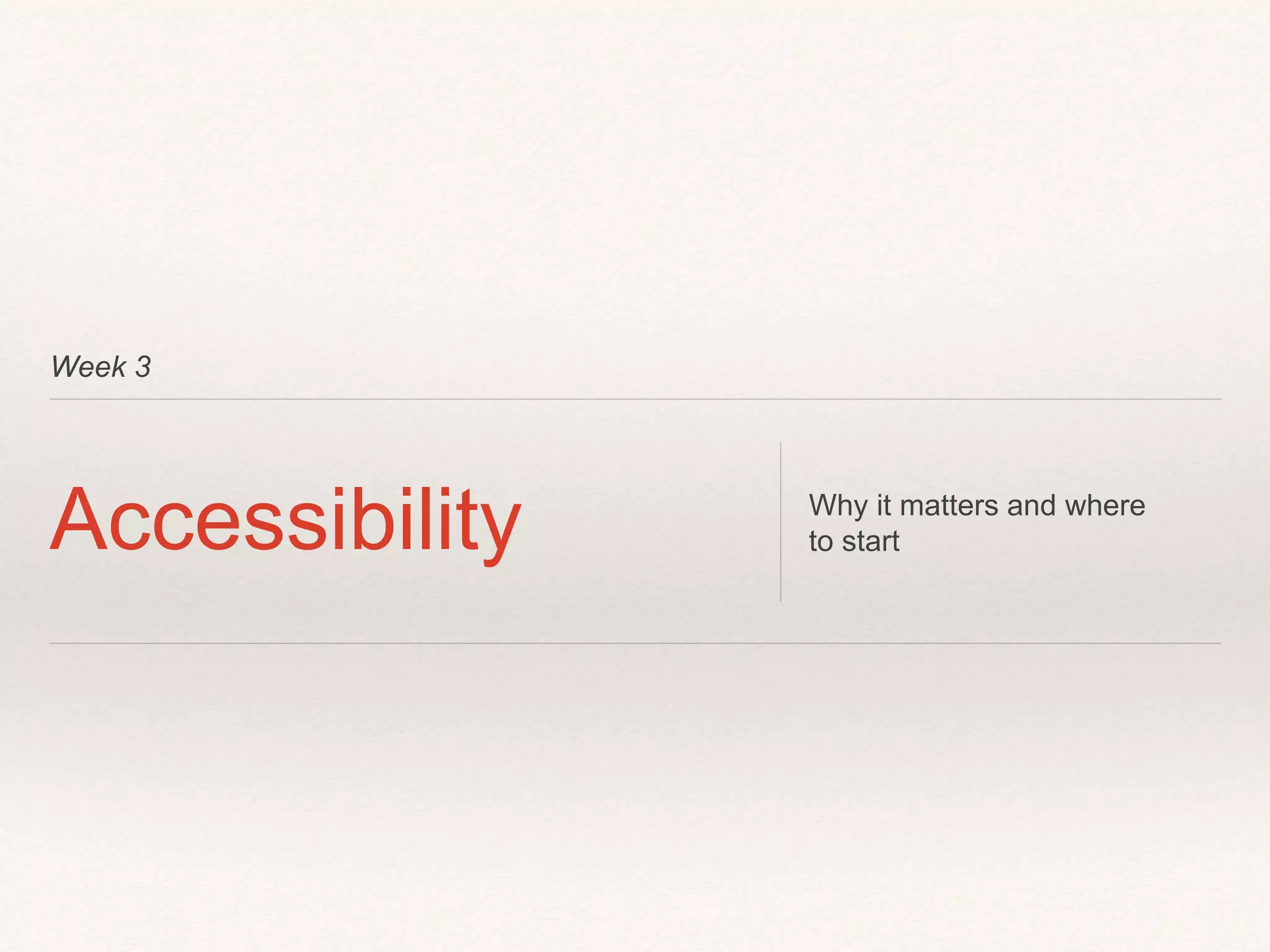 This document discusses accessibility and the importance of considering people with disabilities in web design. It covers the Accessibility for Ontarians with Disabilities Act (AODA), which aims to make Ontario accessible by 2025. It also discusses the four principles of accessibility: perceivable, operable, understandable, and robust. The document recommends following WCAG 2.0 guidelines and designing according to the "accessible first" principle to create content that can be used by all.
