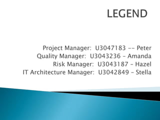 The document outlines a plan to create a universal academic discussion forum and resource sharing platform. Students would be able to discuss subjects they are learning or ask questions about their university. A large database would be established so that students have ample academic resources. There are assumptions about benefits like easier access to useful resources and the ability to discuss with more people. Potential risks include lack of interest from international students due to language barriers, hacking attacks destroying data, and internet connectivity issues. Solutions proposed to address risks include offering multiple language interfaces, strengthening security, using reliable servers with maintenance, and providing guidance for new users.