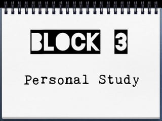 This document provides guidance for students beginning the final coursework block of a photography program. It instructs students to choose a topic for an independent investigation and visual project supported by a 1,000-3,000 word essay. Students are given examples of potential topics and advised to create a mood board and spider diagram to develop their topic ideas. They are also told to begin researching artists and photographers relevant to their chosen topic and collecting materials for their essay. The document outlines deadlines for initial planning tasks and sets up support sessions for progressing on the required essay.