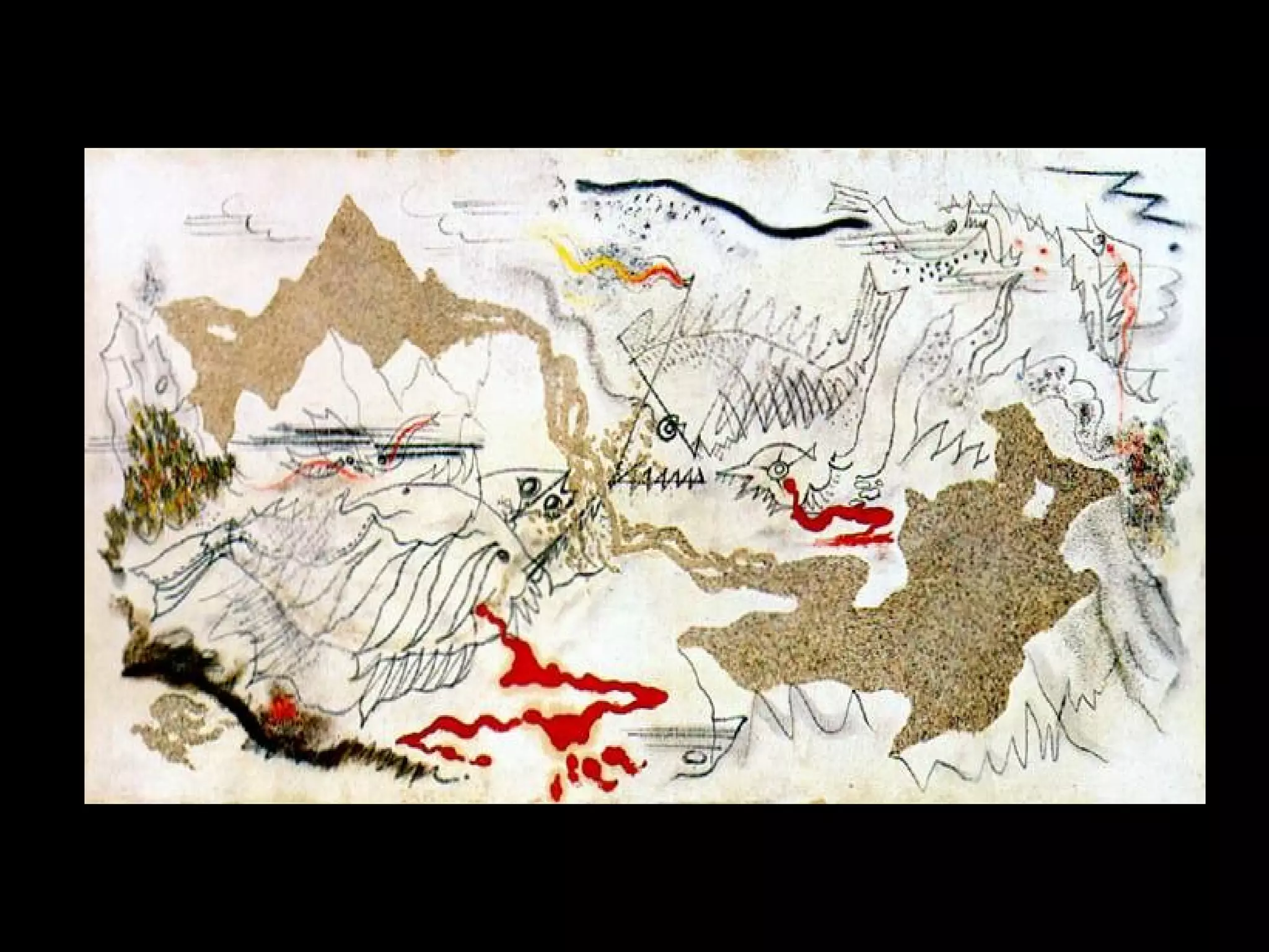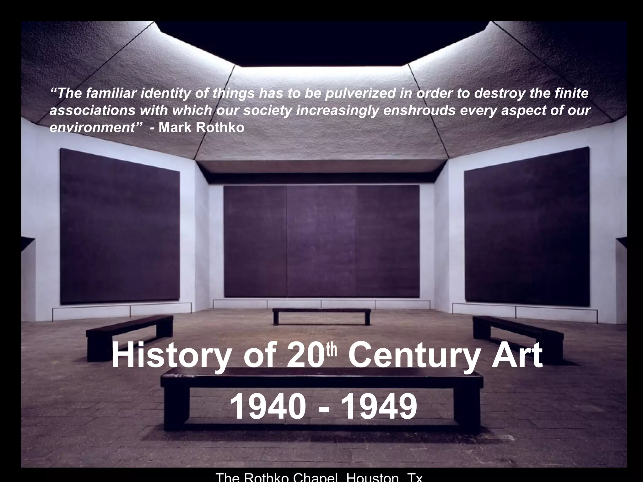 The document provides an overview of art history from 1940-1949, focusing on developments in the United States. It discusses how European artists fled to the US to escape Nazi persecution, exposing American artists to new styles like Surrealism. American artists then developed new abstract styles like Abstract Expressionism, as seen in works by Pollock, Rothko, and De Kooning. The document also covers the Harlem Renaissance and how African American artists like Jacob Lawrence and Aaron Douglas developed a visual vocabulary to express Black identity and culture through a hybrid of European modernism and traditional African forms.