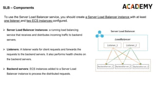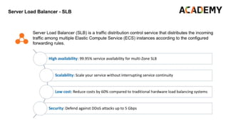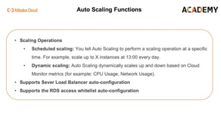 The document discusses server load balancers and auto-scaling in the context of cloud computing, specifically under the instruction of Dr. Ferdin Joe John Joseph at the Thai-Nichi Institute of Technology, Bangkok. It indicates a focus on the Alibaba Cloud portfolio and mentions future topics such as object storage services and demonstrations. The document serves as a resource for faculty and students in the field of information technology.