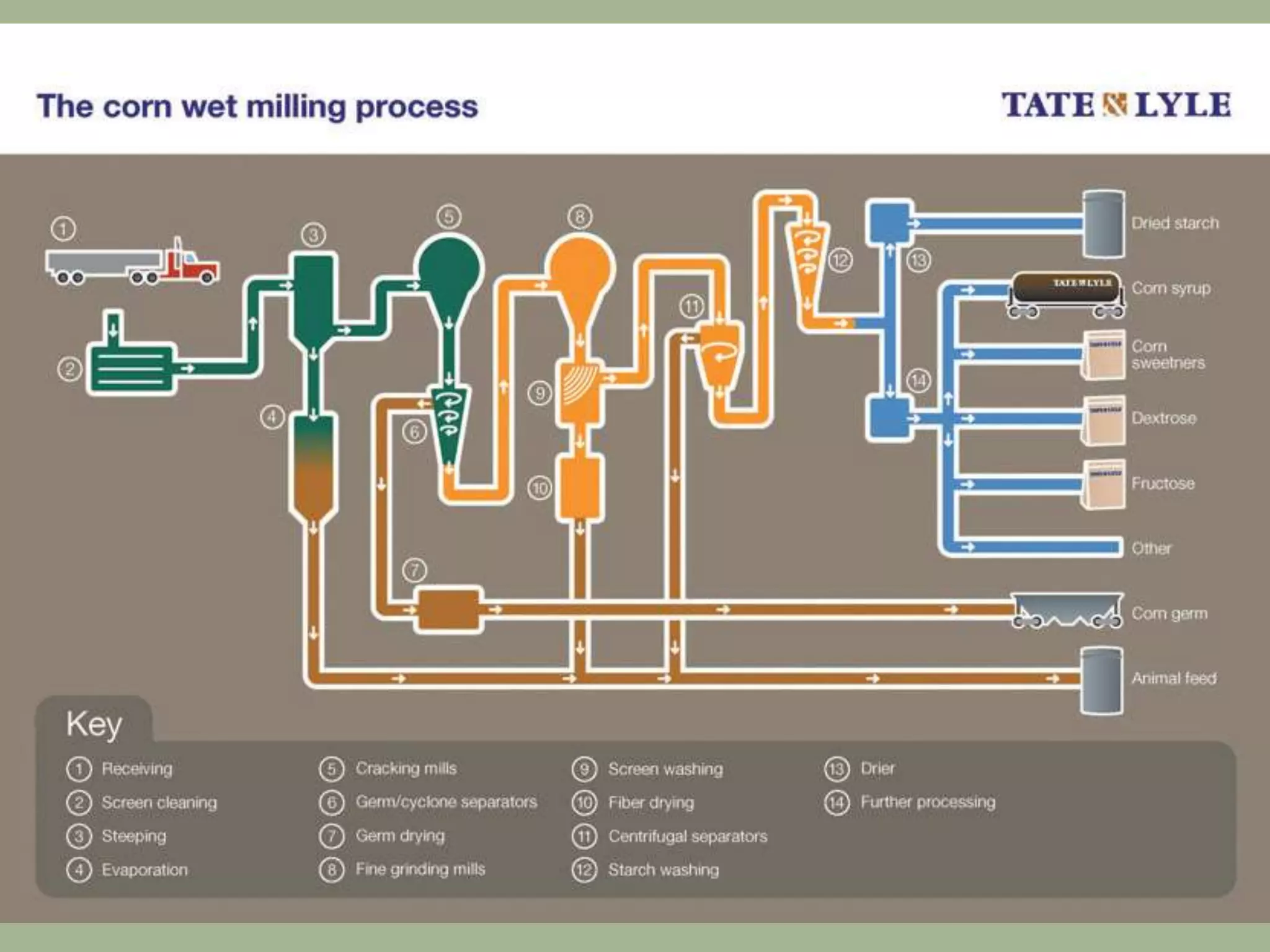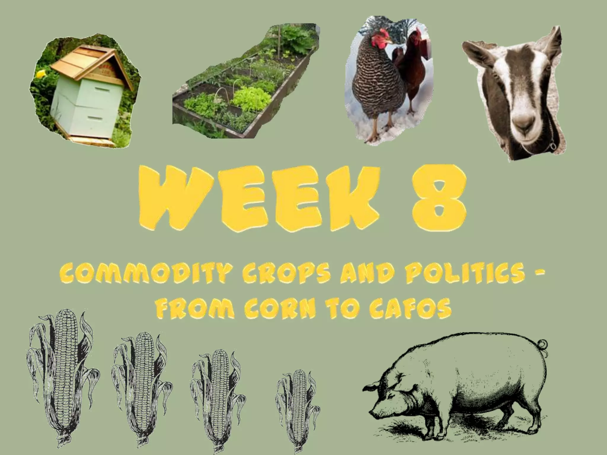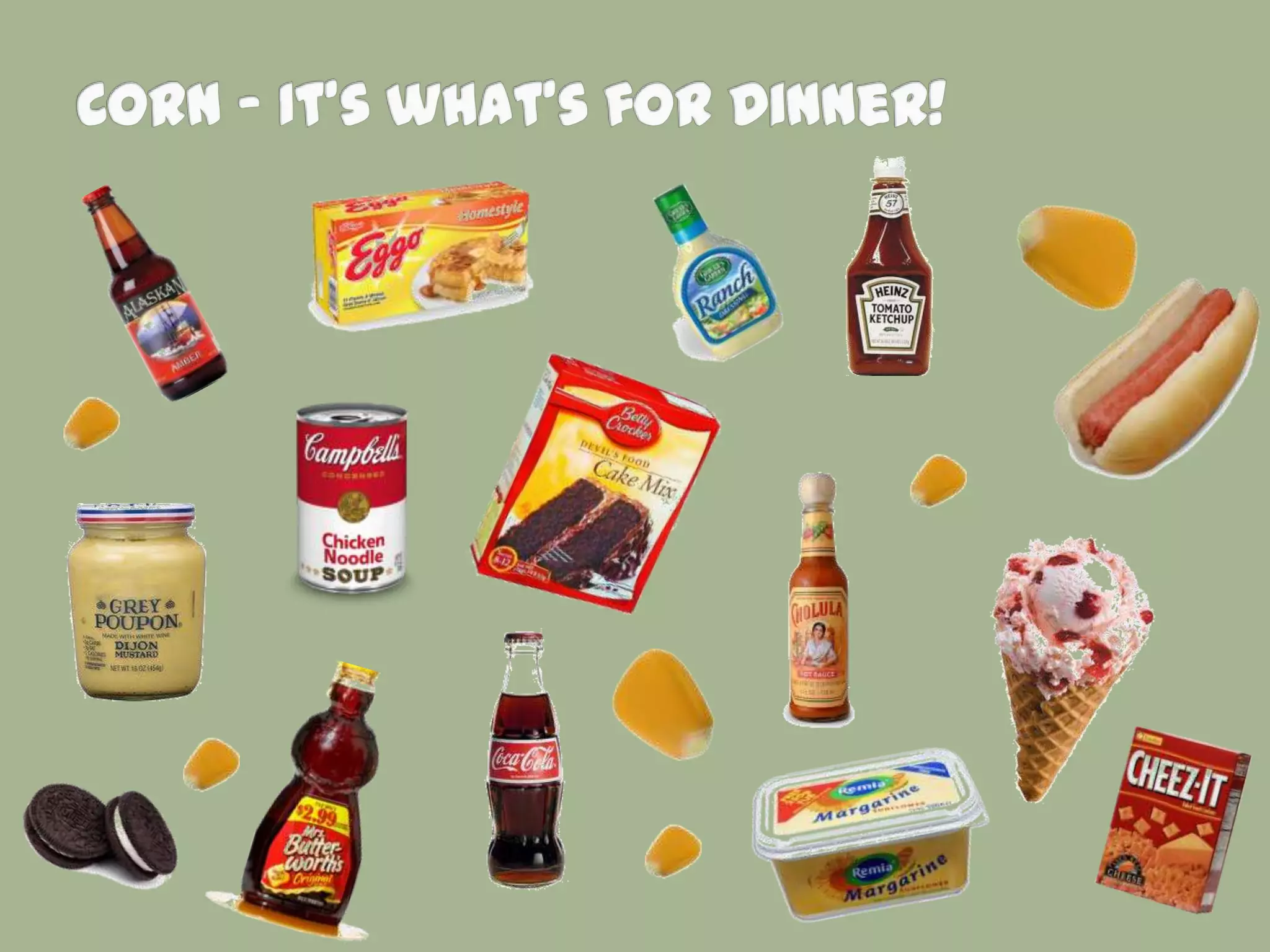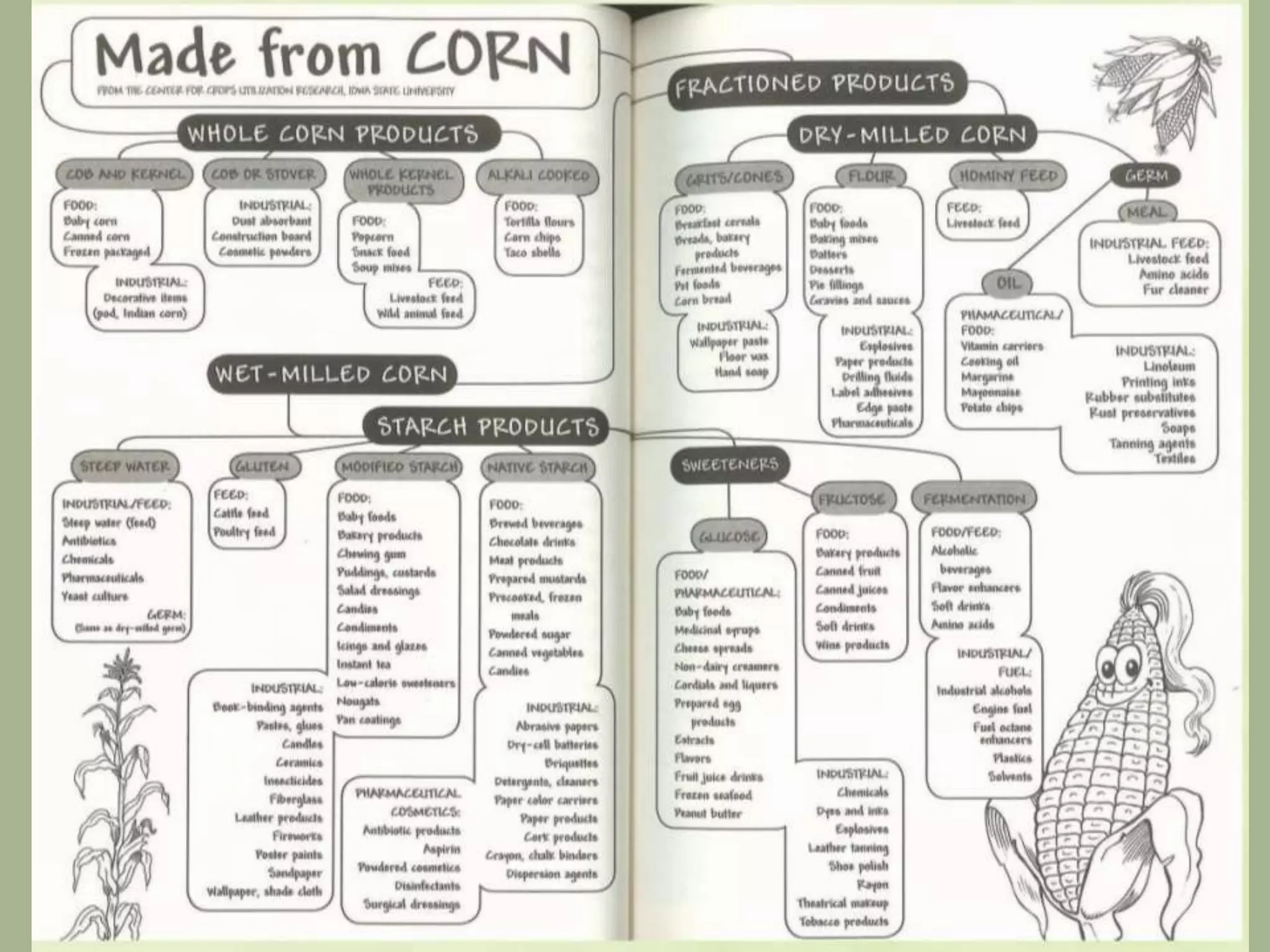The document discusses the origins and impacts of corn production in the United States. It notes that 1) most of the carbon in our bodies originates from corn plants; 2) wet milling is an energy intensive process used to make many food additives from corn; and 3) overproduction of corn through subsidies has led to negative health, environmental, and economic consequences throughout the food system.