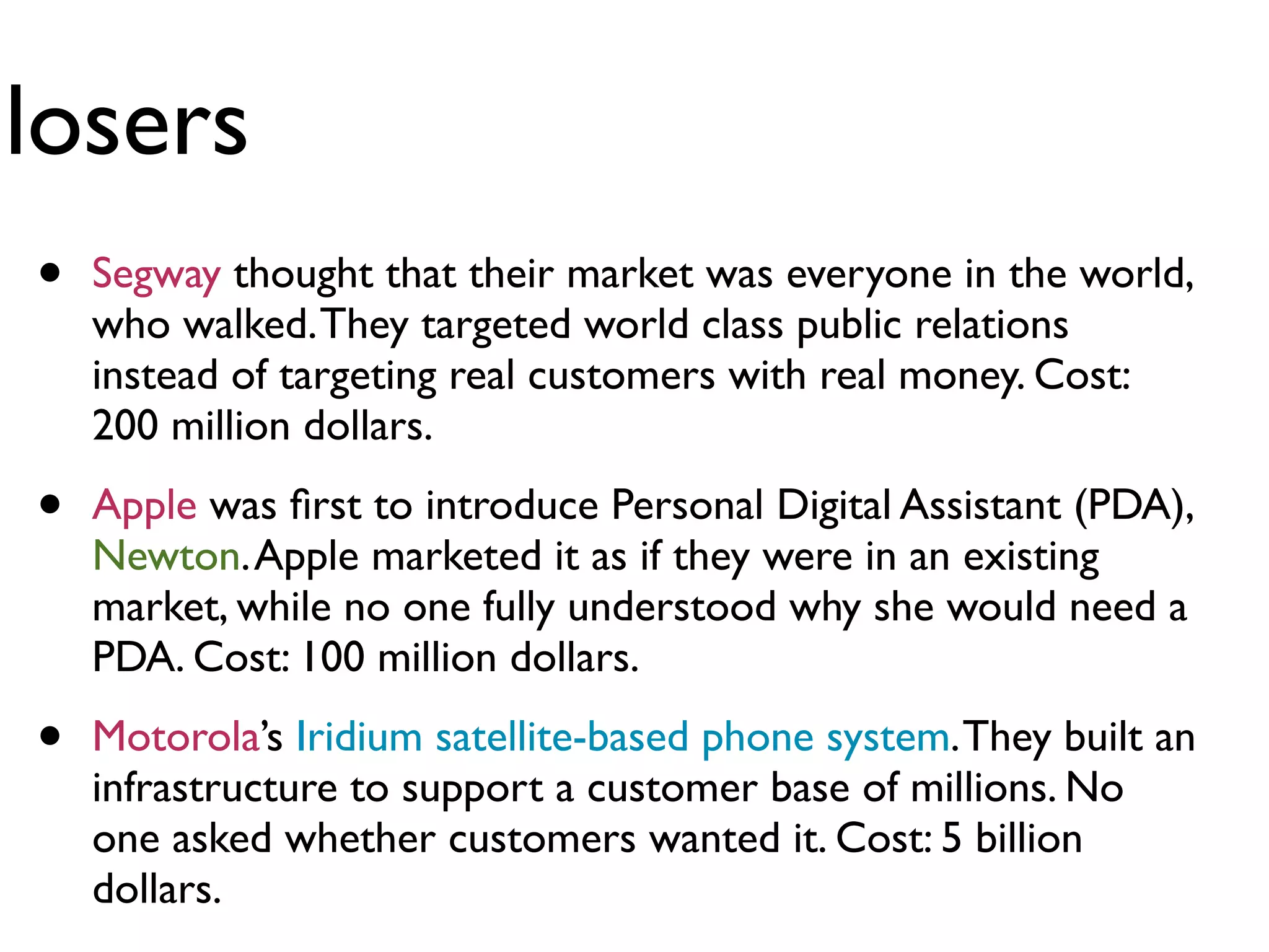 The document discusses the outcomes of various companies through the lens of product development and customer development models, highlighting the failures of companies like Webvan due to a lack of understanding of their customer base. It contrasts this with the successes of companies like Toyota and General Mills which targeted specific market needs. The author advocates for a simultaneous use of both product and customer development models to ensure market relevance and customer engagement.