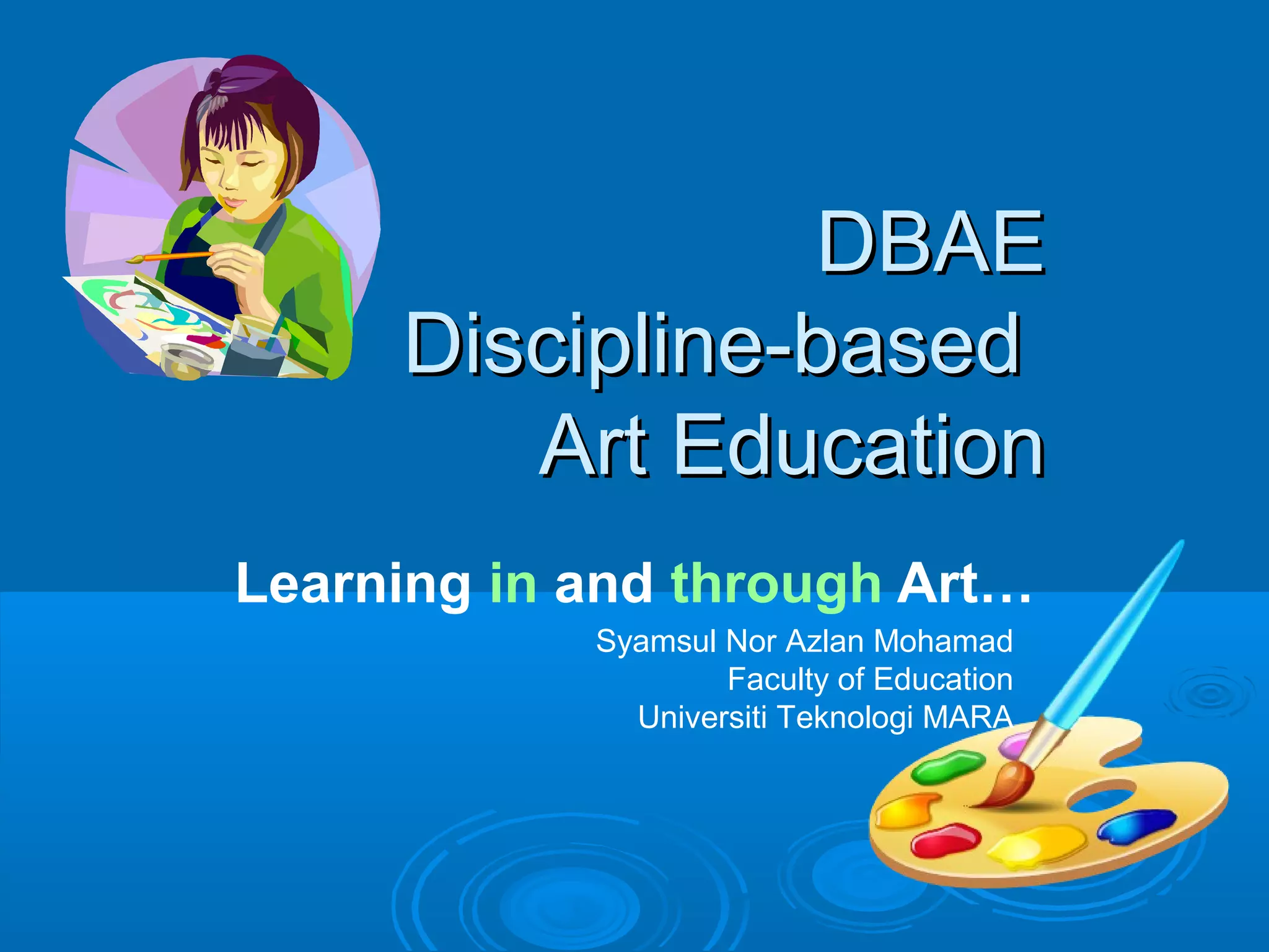 The document discusses Discipline-Based Art Education (DBAE), an educational program developed in the 1980s that promotes art education across four disciplines: art production, art criticism, art history, and aesthetics. The goal of DBAE is to develop students' understanding and appreciation of art by providing knowledge of art theories and contexts as well as opportunities to create and critique art. It aims to make art education more standardized and academic.