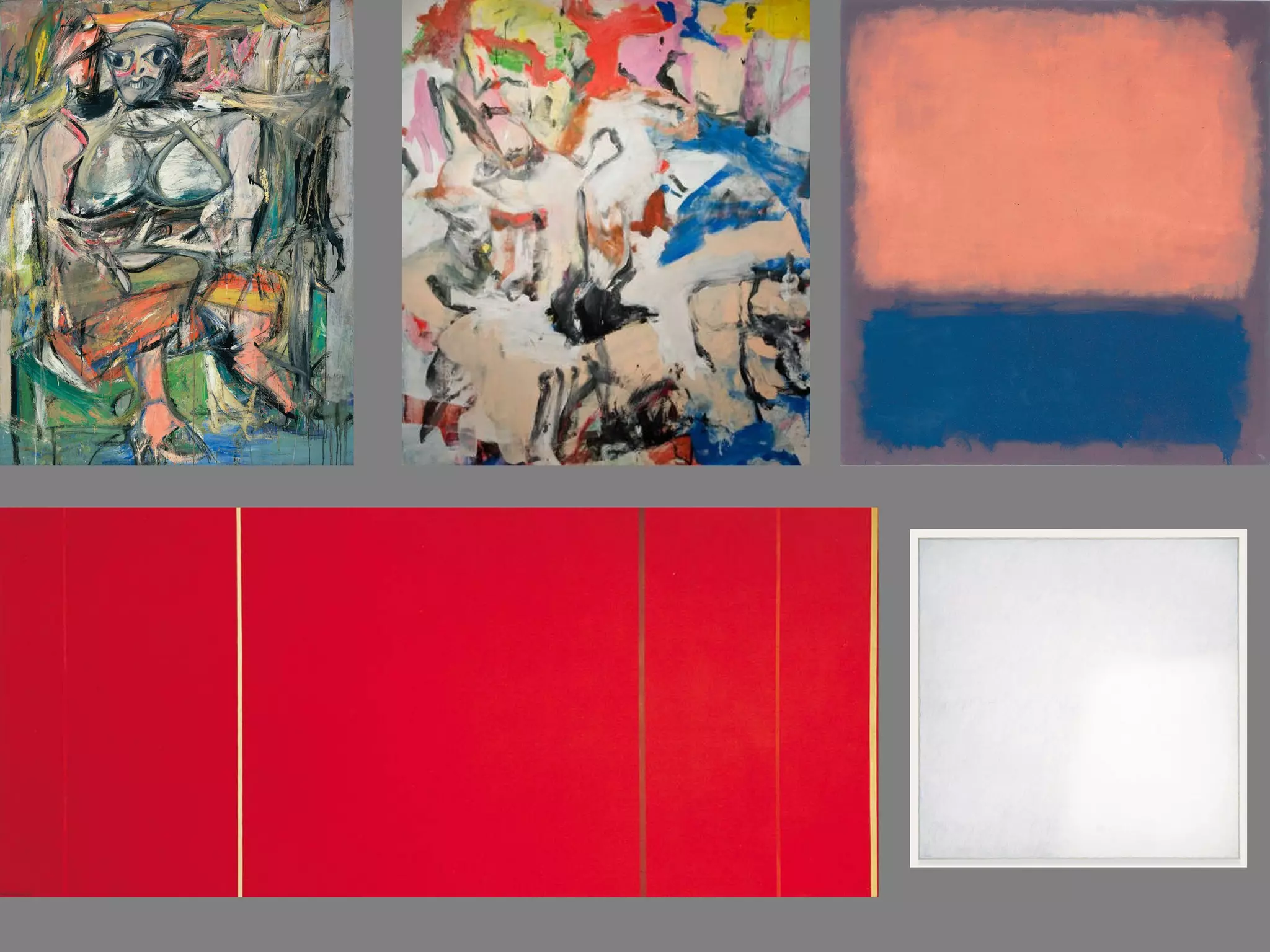 The document summarizes major developments in art since 1945, including the shift of the art capital from Europe to New York after WWII, the rise of Abstract Expressionism and its focus on emotional intensity and self-expression, Color Field painting, and the emergence of Minimalism and conceptual art in the 1960s which emphasized objects and ideas over illusionism. It also discusses the influence of pop art and artists like Andy Warhol who incorporated popular culture imagery and mass production techniques.