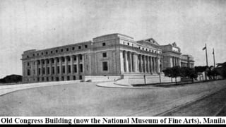 3. Under the Americans, science education expanded greatly through public schools and the University of the Philippines, and infrastructure like hospitals and transportation improved. World War 2 set back developments but rebuilding began with foreign aid.