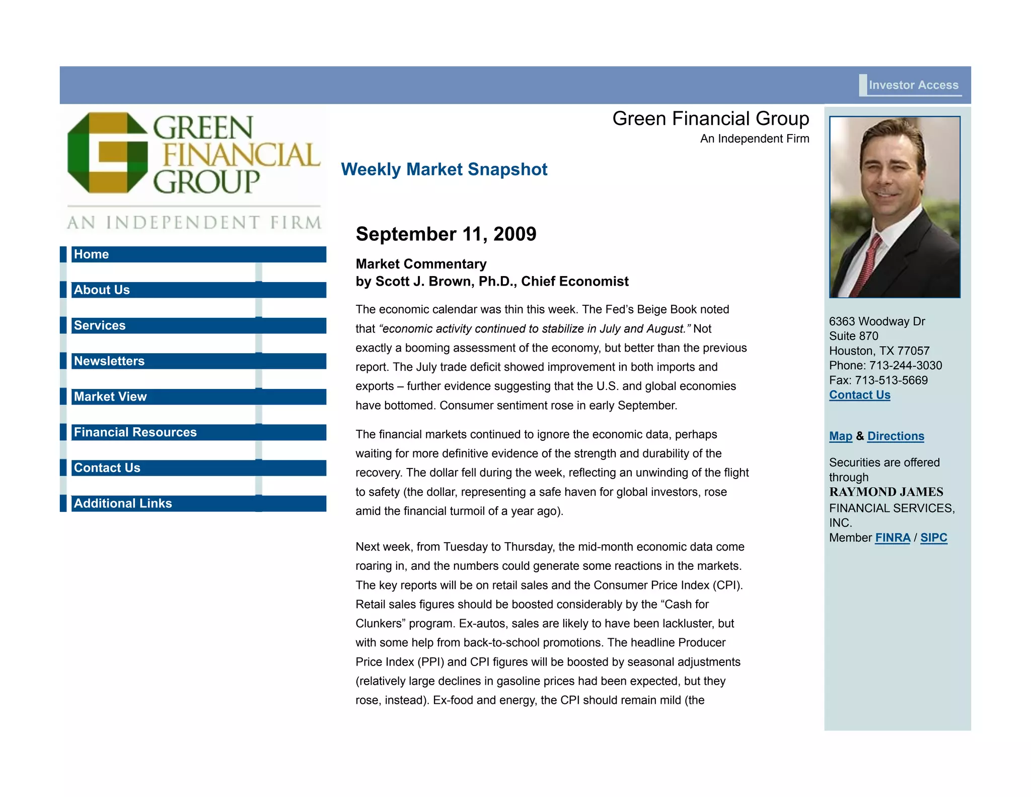 The economic data this week showed signs that the U.S. and global economies have stabilized and possibly bottomed out. Retail sales are expected to rise significantly due to the "Cash for Clunkers" program. Upcoming reports on retail sales, consumer prices, and other economic indicators next week could generate market reactions. Financial markets continued higher despite thin economic data, perhaps waiting for stronger confirmation of recovery.