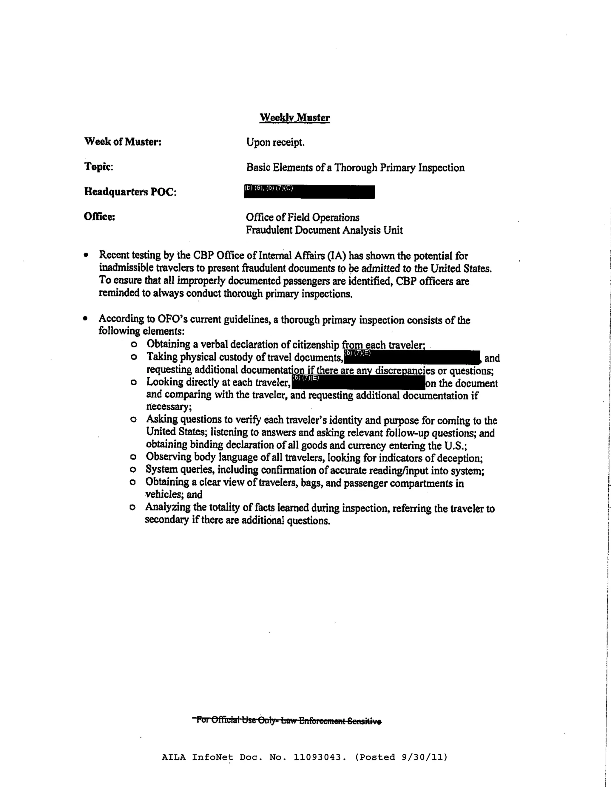 CBP Muster on the Basic Elements of a Thorough Primary Inspection, see what CBP officers will looking from travelEres coming into the US.