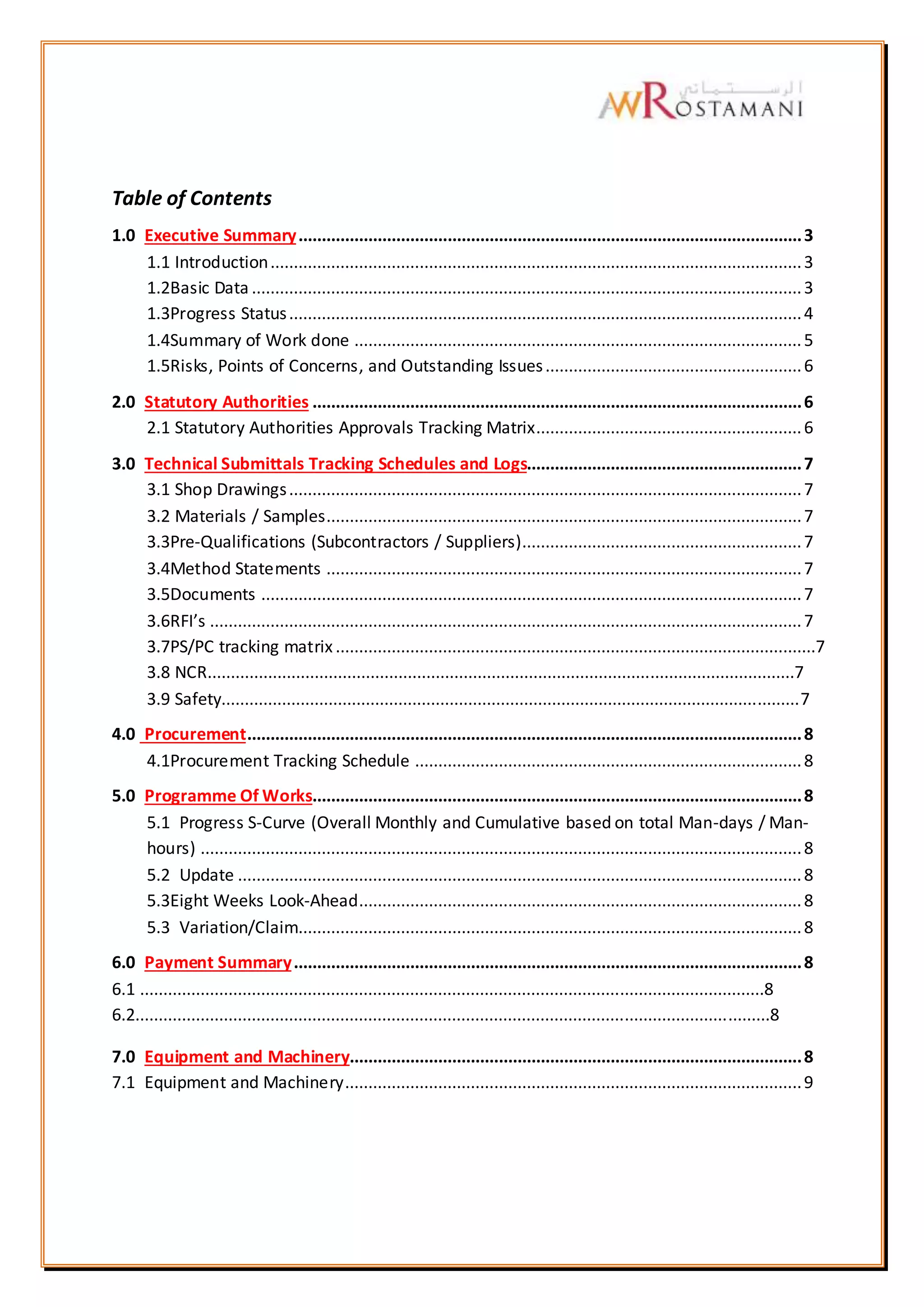 3) Shop drawings, materials, and procurement are largely on track per attached annexures.