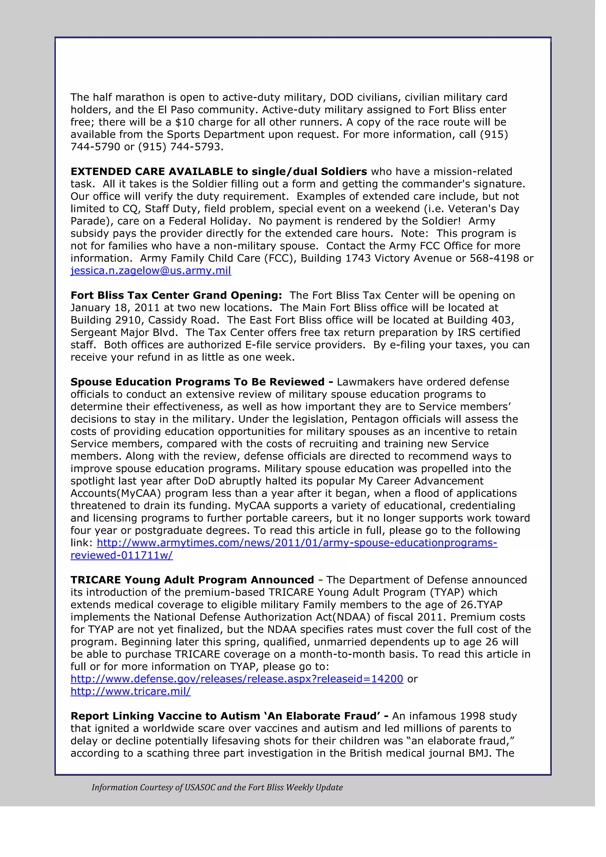 3) The William Beaumont Army Medical Center pediatric clinic has relocated.