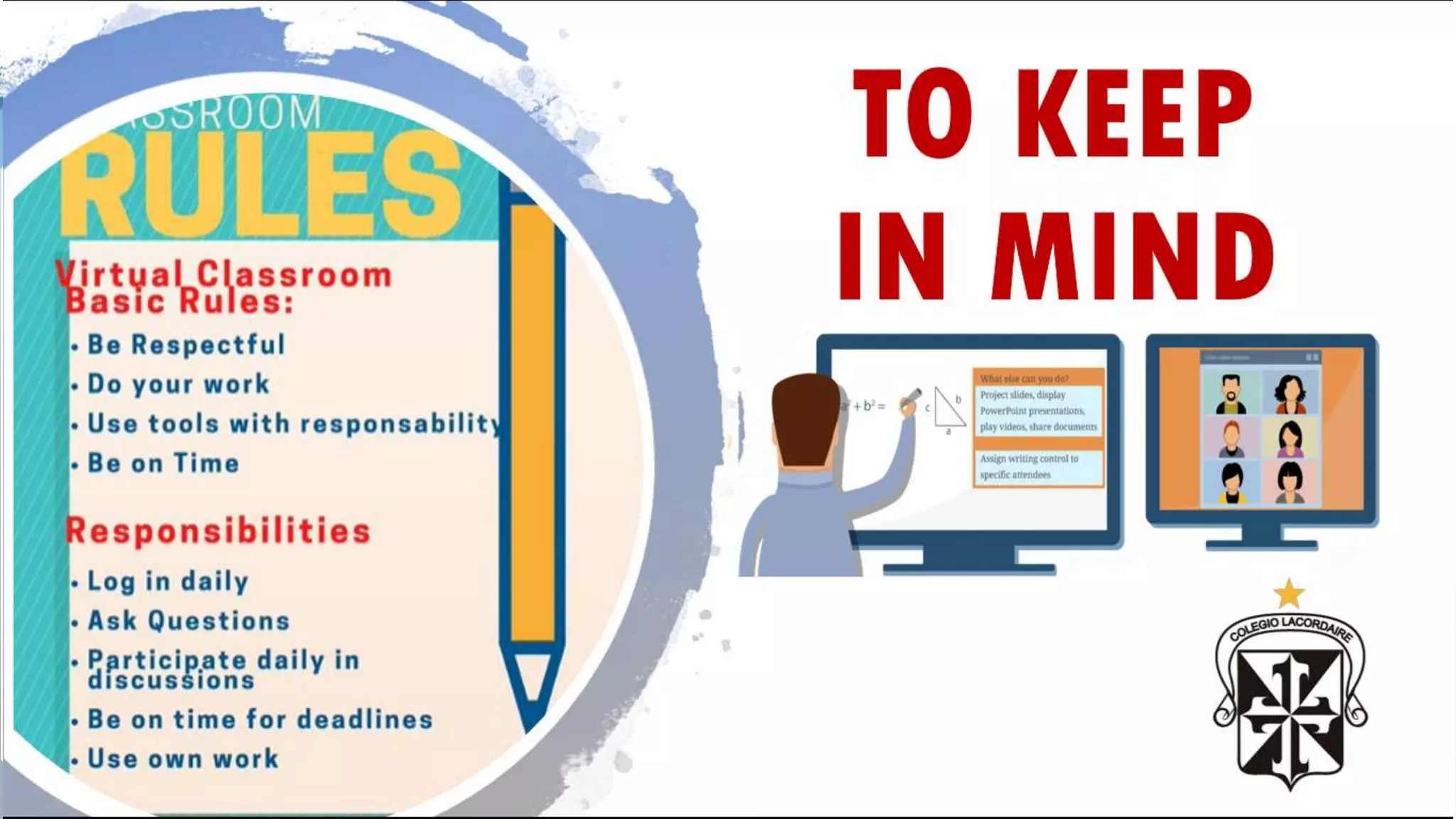 This document contains a weekly lesson plan for a 4th grade English class. The plan outlines activities for reading, writing, listening and speaking. It includes assignments from the student's book and workbook as well as a word association game to discover school subjects. Students are reminded to turn on their cameras and take notes during the virtual class.
