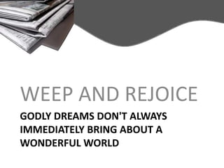 2) There will always be opposition to God's plan, and sometimes that opposition comes from within the faith itself.